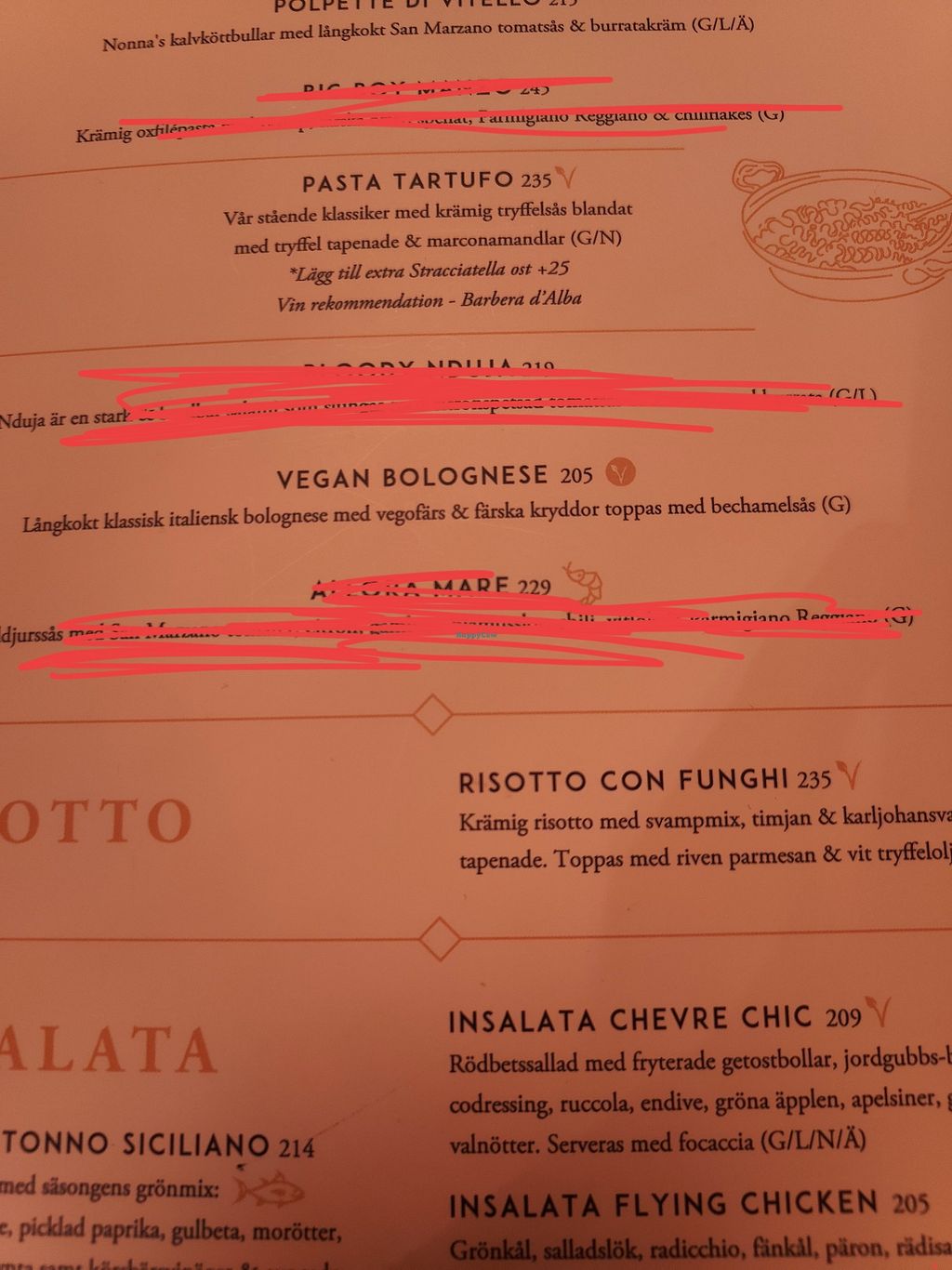 Part of menu, clearly marked