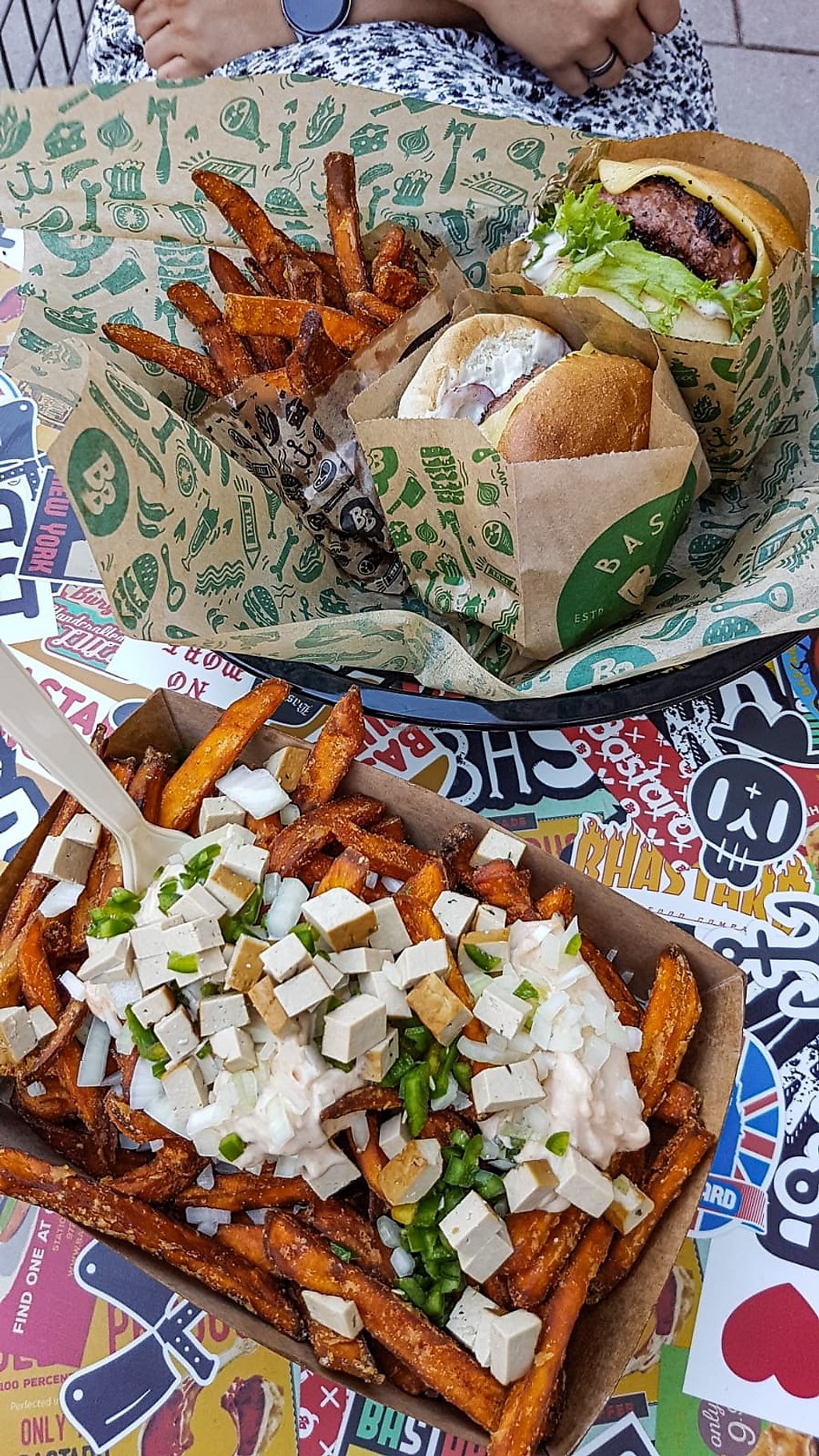Beyond London and Beyond Luleå burger, sweet potato fries a d fries an…