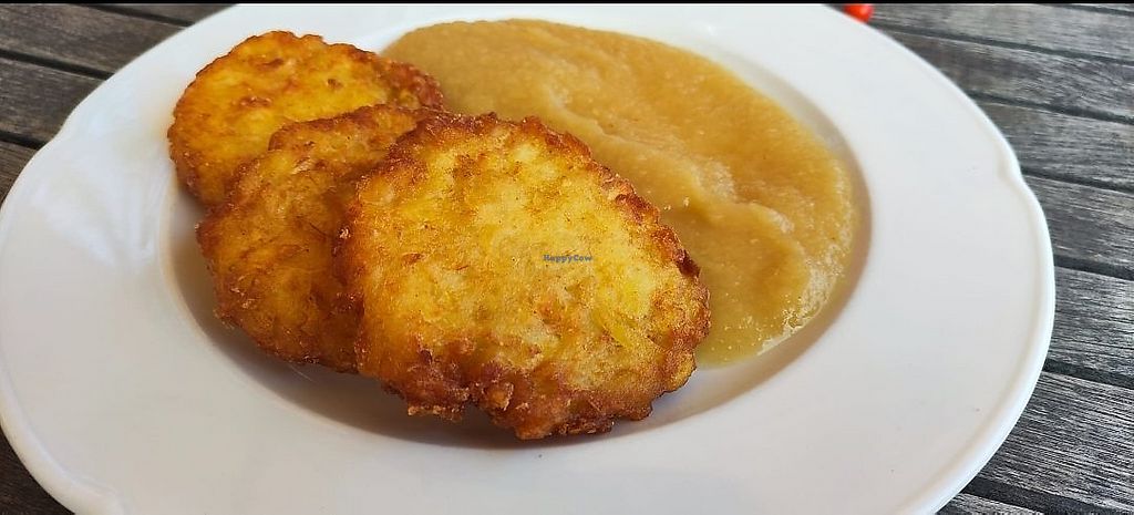 Menu with 3 clearly labeled vegan dishes. We took the vegetable wok with rice and coconut-curry sauce and potato rosti with apple sauce. Both very good. Generous portions.