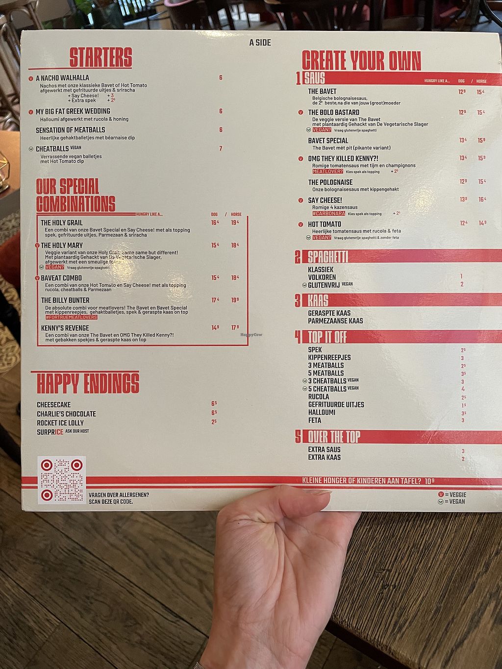 Choice between a small or a large spaghetti, with toppings. Unfortunately no vegan cheese or nutritional yeast. We chose rucola and fried unions as toppings, which were good too. Would be great to have vegan cheese added to the menu or a vegan dessert. The glutenfree spaghetti is vegan. Well-indicated. The vegan meatbals as starters are really good. Payment via card.