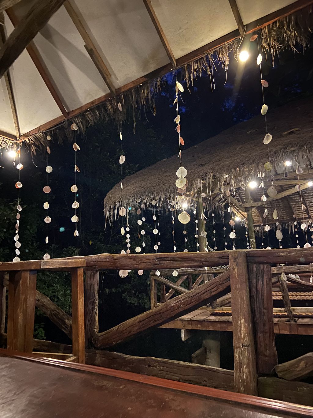 You sit on wooden platforms over a beautiful lagoon. You can relax in hammocks with a nice cocktail or sit down and try a lot of vegetarian food. There is some vegan food provided as well, but the choice is not that good. We had a great golden sundown view. Main dishes between 120 and 250 thb.