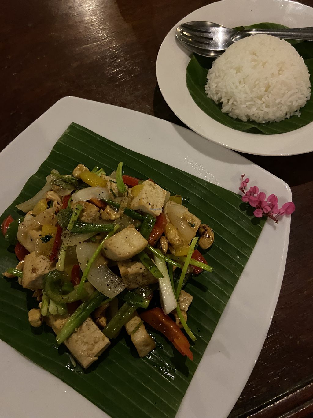 Outdoor seating next to a beautiful lagoon, very nice surroundings. The menu offers vegan options (marked), different starters to choose from but few main dishes are vegan. Would like to see more vegan tofu mains (curries etc.) The dishes marked as vegetarian contain fish sauce and non-vegetarian curry paste.