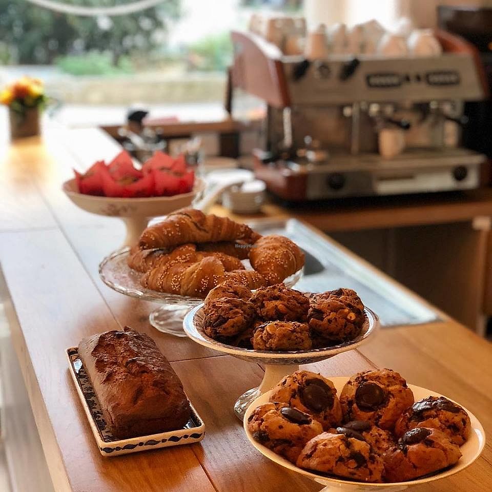 The waitress spoke English fluently and chatted with me on and off throughout my meal. She was friendly and her good customer service made my experience! I had hot water infused with lemon and ginger. The main course was mung bean dal with veggies, salad, and their version of Indian donuts (stuff with cauliflower!). Delicious! For dessert, I enjoyed a lemon tart with coconut cream...To die for! It was all so tasty that I got a croissant and a small almond French cake to go. Incredible.