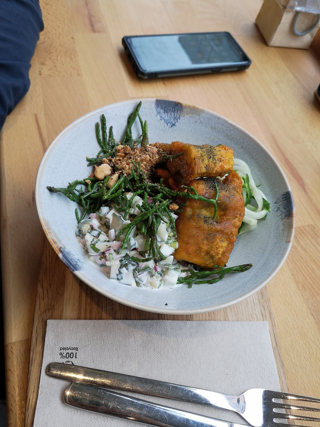 Vish & Chips und Beyond Meat Burger Menü