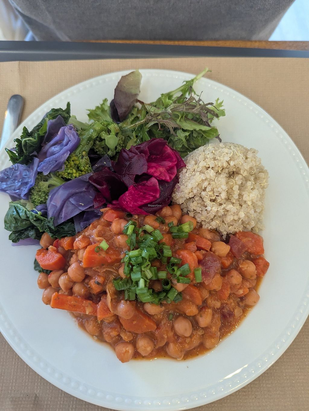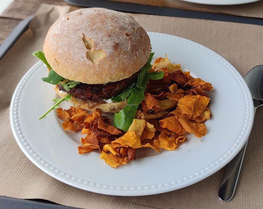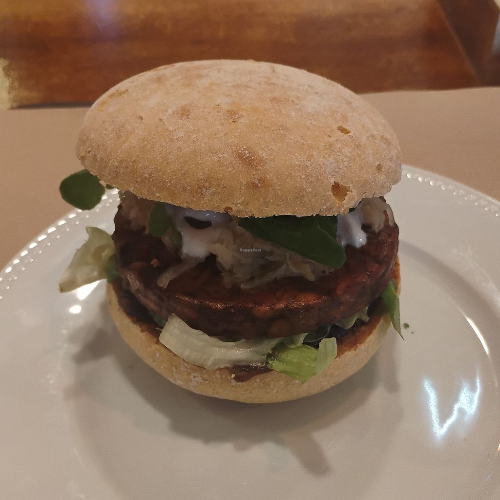 The food was good, we took the menu do dia, with soup and vegetable plate. Tasted simple but good. We also took the tempeh burger which was delicious: crispy bread, good tempeh, delicious caramelized oignons.