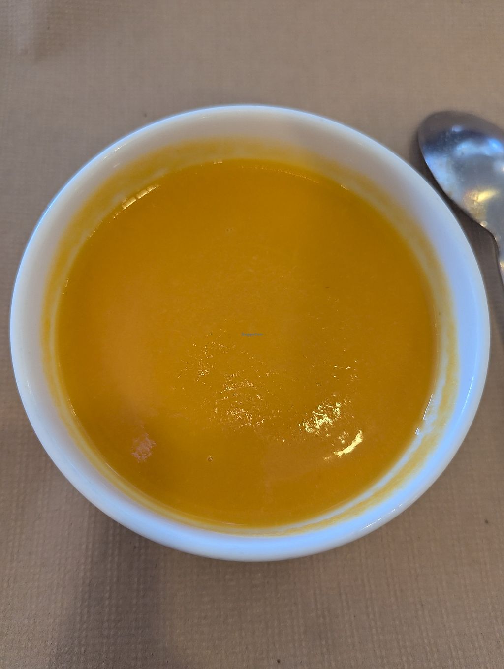 Got a tasty banana bread (Gluten free) with chocolate and pumpkin soup. Everything was delicious and tasteful. Prices were fair. The tofu burger from the neighboring table looked very good!!