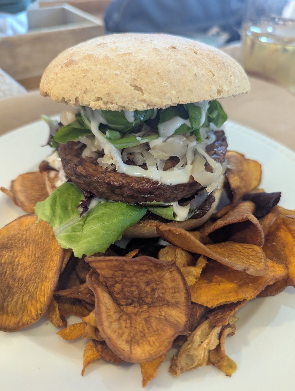 They offered a tempeh burger when I was there, which tasted really well. I think it had sauerkraut? Delicious.