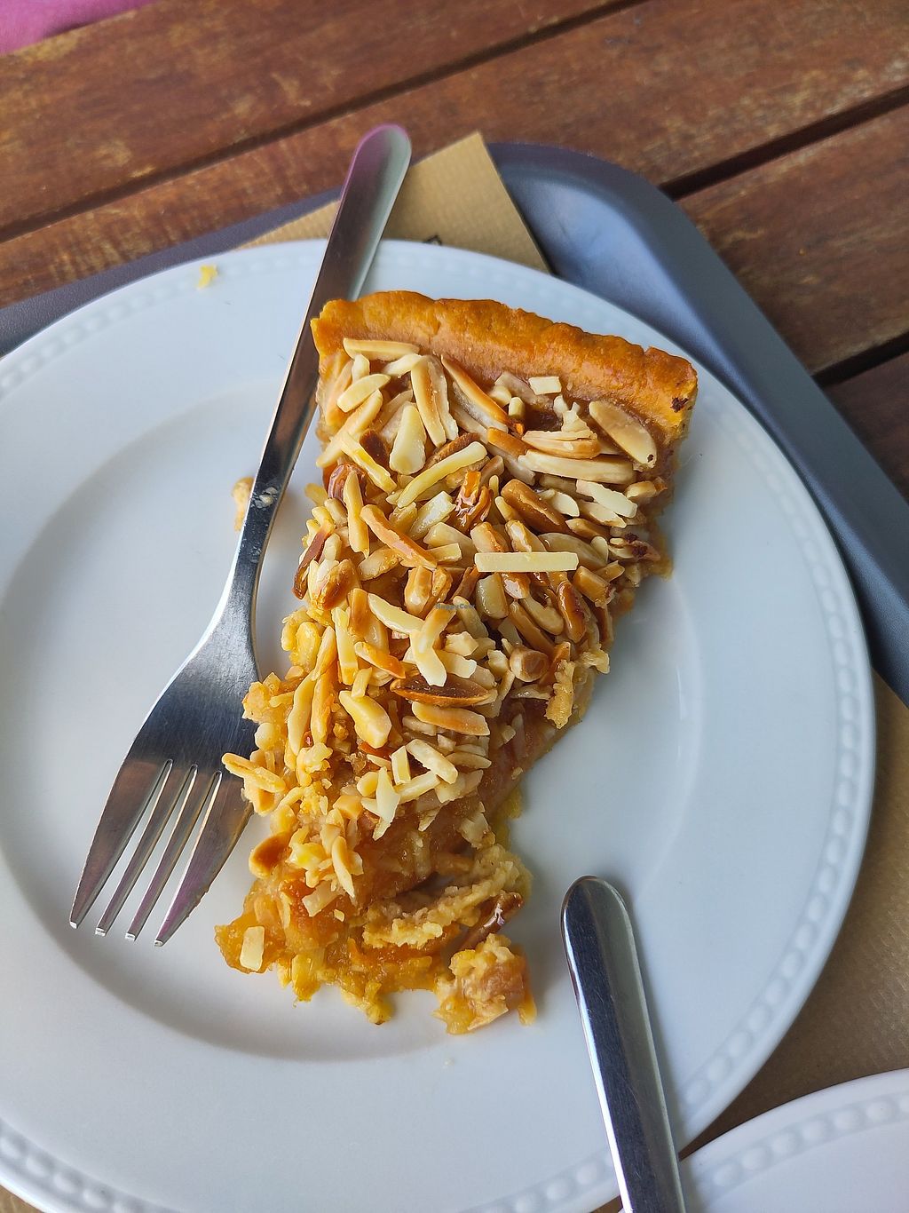 I was too early for lunch but unable to resist the just out of the oven pastry I spotted. It turned out to be a delicious and flavourful delight stuffed with pumpkin and coconut, clearly no cane sugar to beat up the other flavours and a delight for the tastebuds. I also took a berry muffin away and it was fluffy and moist, a very elegant dessert. This modest little place is tucked away and could be easily missed but is somewhere I would walk the 30 minutes in this scorching Portuguese summer heat again to dine at. As someone who has been vegan for 35 years and dined in many places, that really is an accolade.