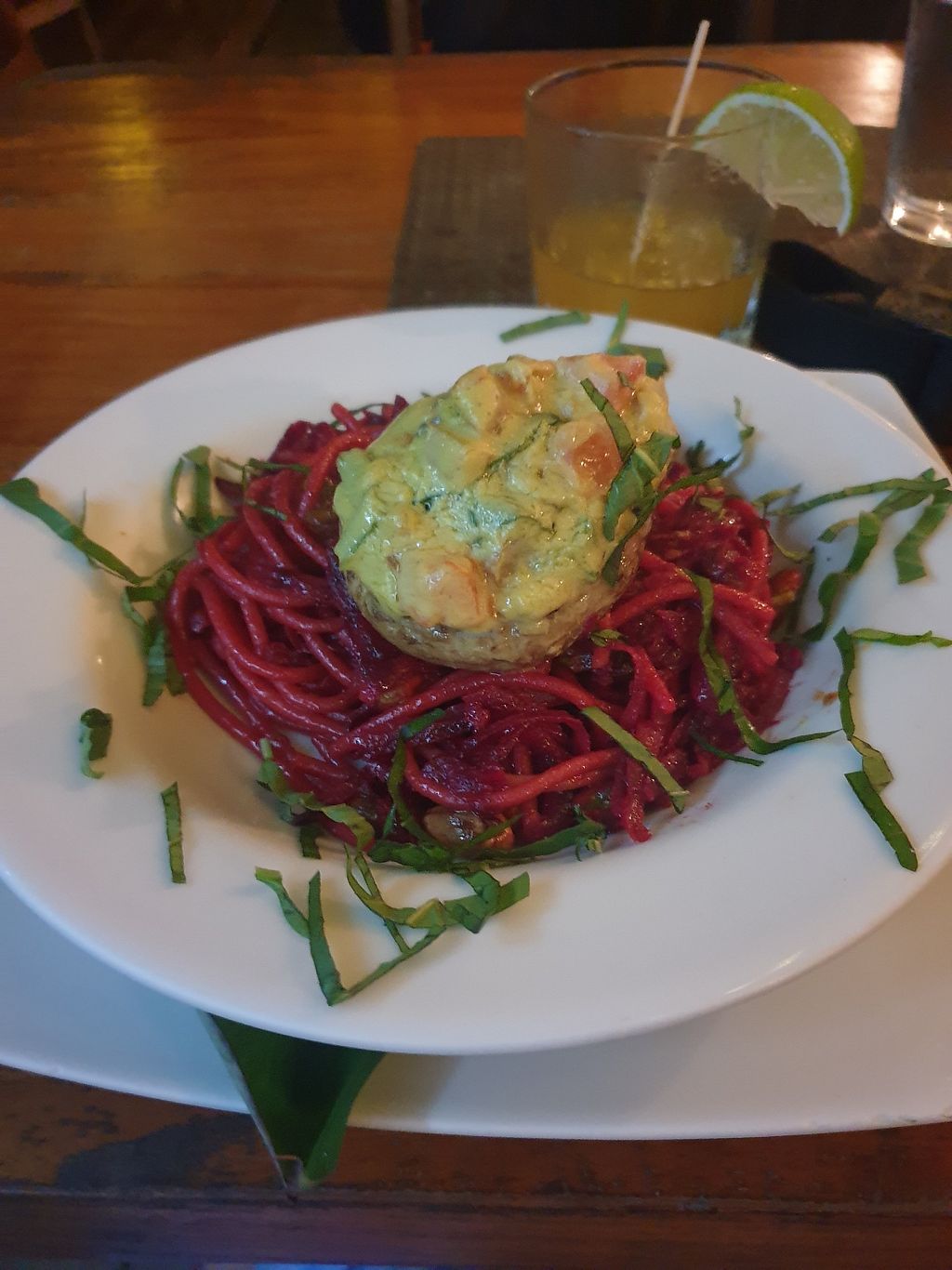 They had a really interesting selection of vegan food that differs from the standard vegan options you get on menus. I had the beet-stained stuffed mushroom pasta which was super tasty and was tempted to get more as they sounded so good, but I wouldn't have been able to eat it all 😅 the staff were really lovely too. It is pricey but I guess in keeping with Nosara in general (EDIT: after being in Nosara for longer, they are definitely very pricey!) They have 'vegan forward' as one of their missions, however still serve seafood (maybe meat too, I didn't check), would be fab if they were to go all vegan with that in mind!!