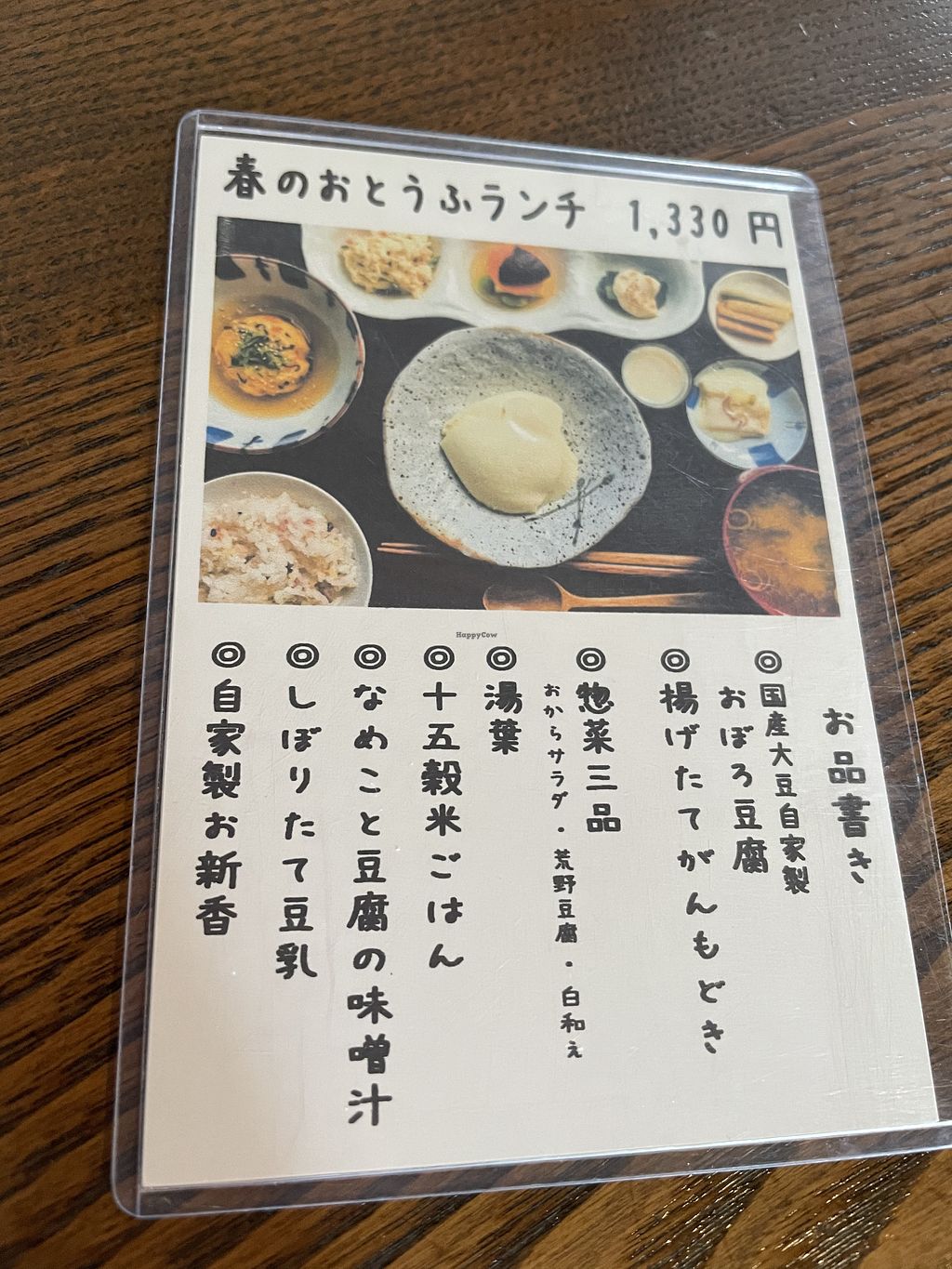 One of the best tofu restaurants I have been so far. They have seasonal local veggies too. The menu changes time to times. The tofu is super delicious and the atmosphere is nice! If you also purchase something from the tofu shops pay attention to the ingredients, some items such as doughnut are not vegan!