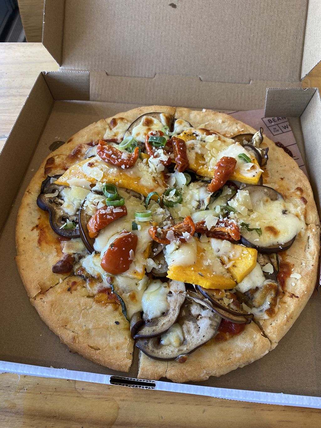 Read morePizza tasted nice, however, they have no idea how to properly make a pizza. Was just slabs of pumpkin and eggplant on there. Would have thought they would have cut them up