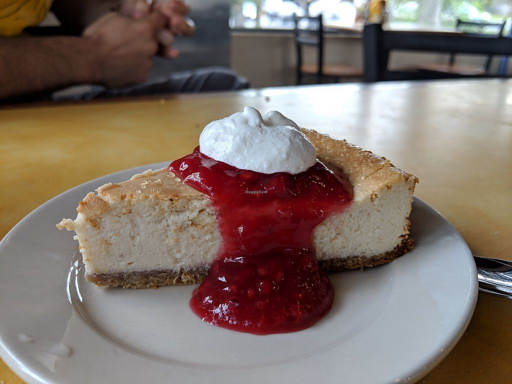 Vanilla cheesecake with raspberry compote and whipped cream