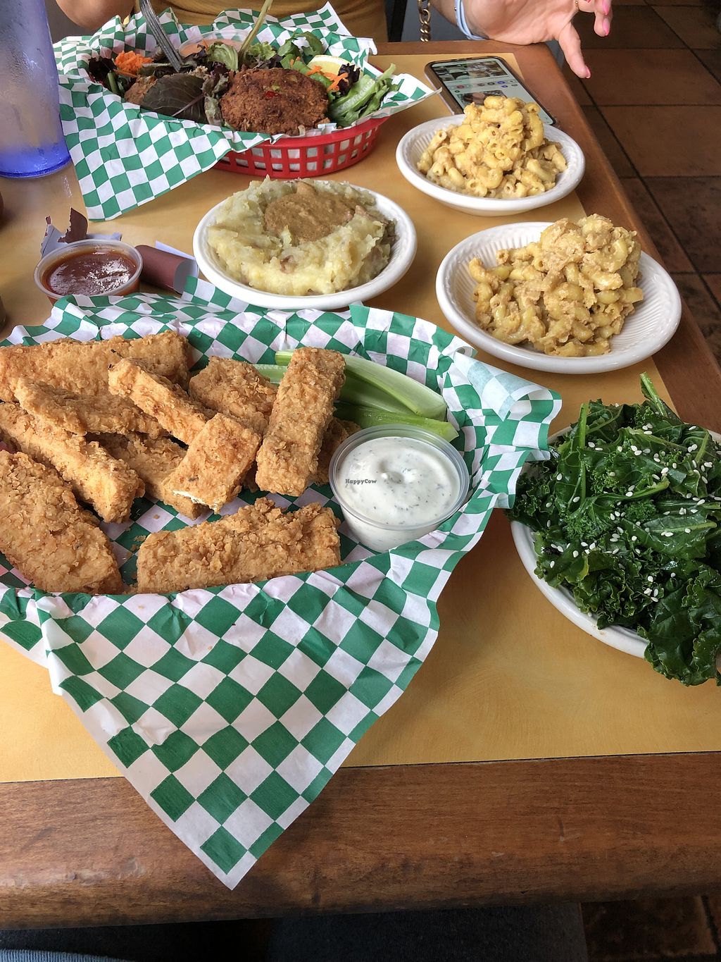 Jackfruit tacos and tofu fried fingers with fried pickles, mac 'n' che…