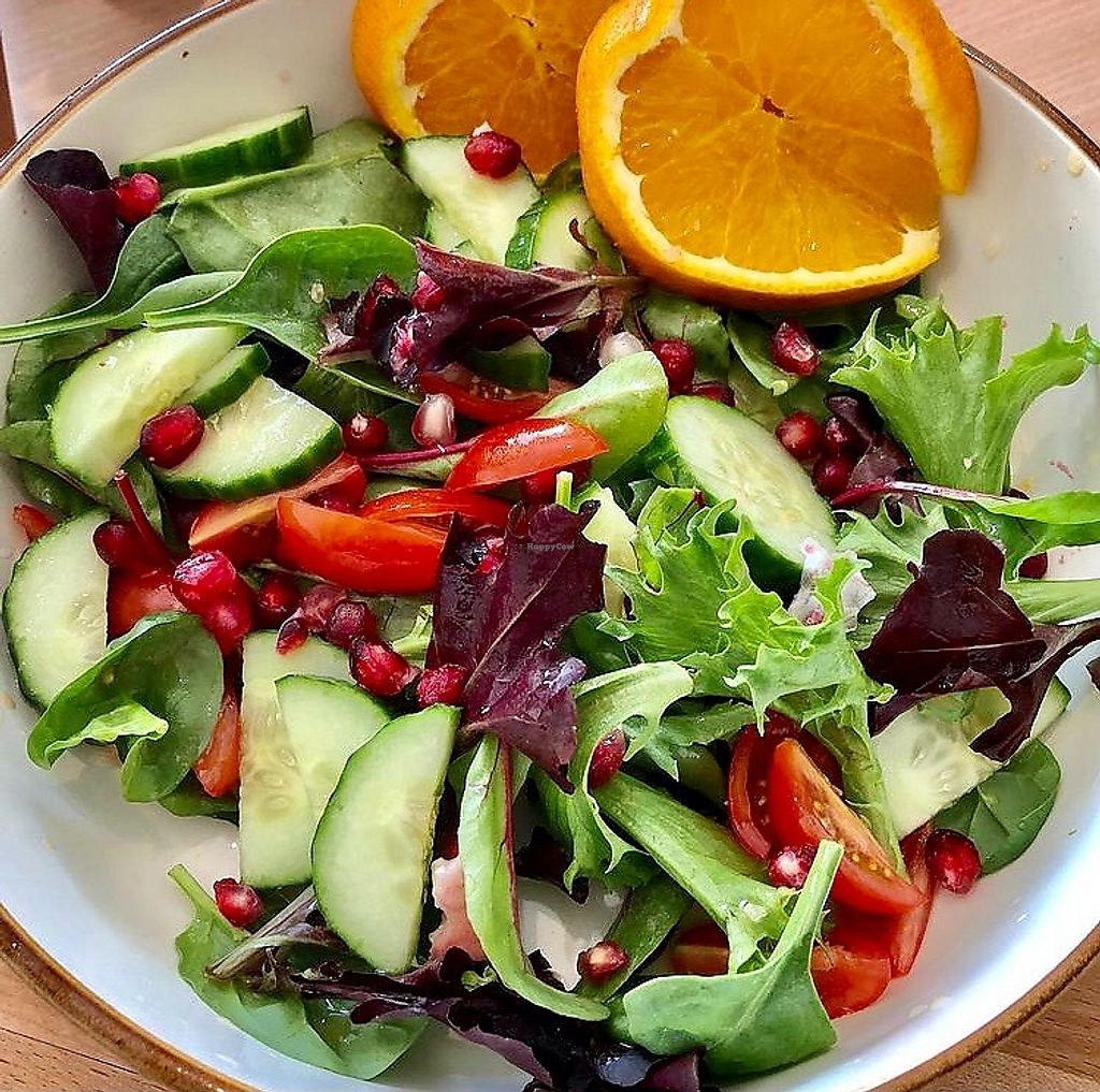 Raw cauliflower, carrot and broccoli cous cous with chilli and lemon