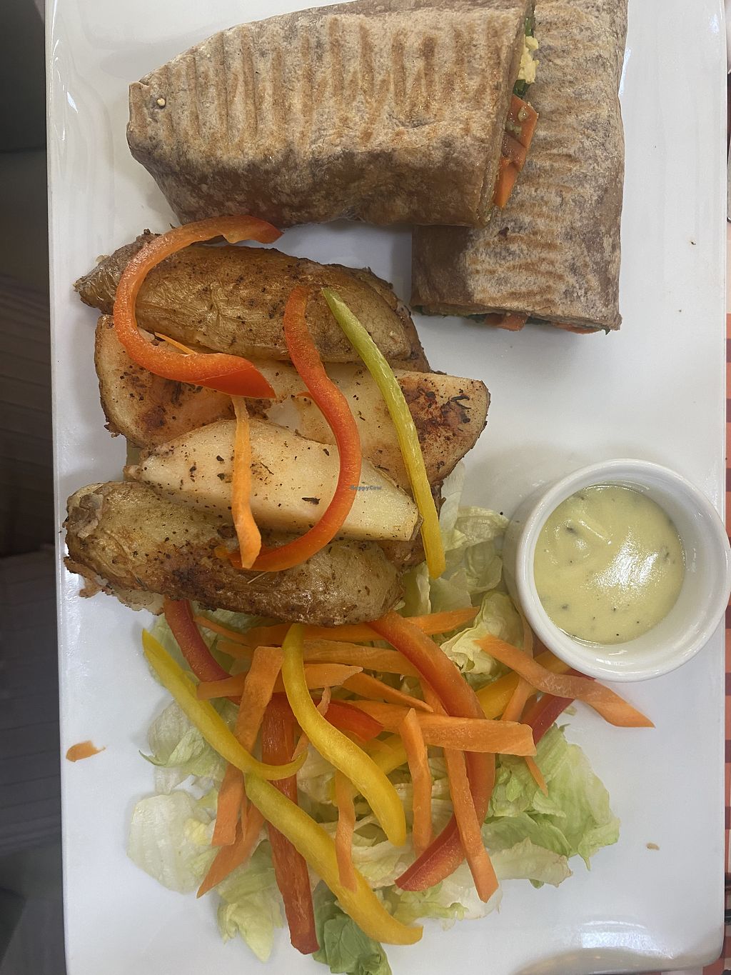 Not huge amount of vegan options. But got the vegan hummous and veg wrap which was fine. The potato’s it comes with are really good.