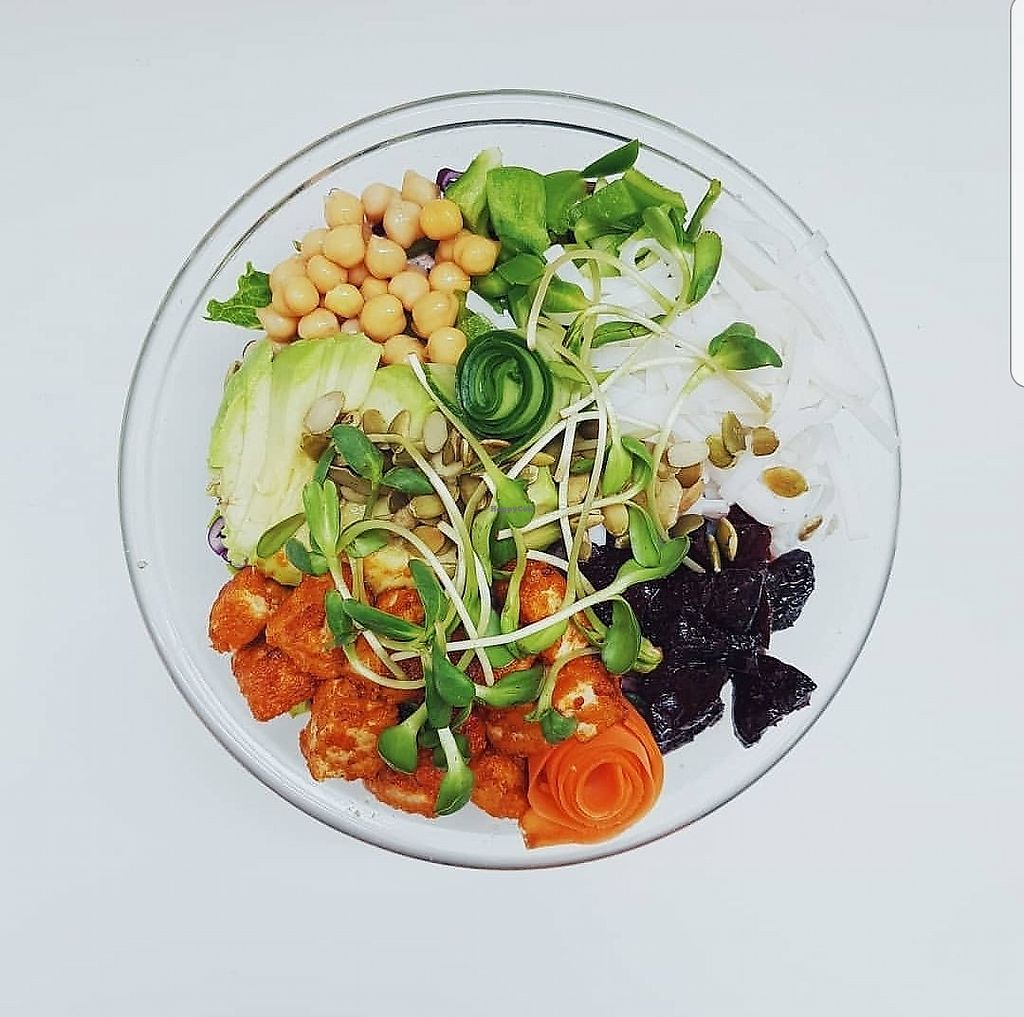 Toast with scrambled tofu and sprouts, it usually comes with springs o…