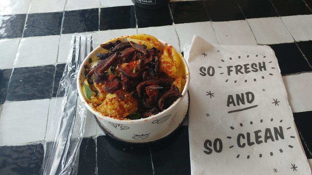 Was excited to finally visit the cafe inspired by Chef Cloe. Her cookbooks are a main go to in our house. Had the Mac and cheese. Loved the mushroom bacon on top.