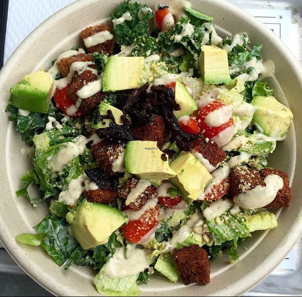 Caesar salad with shiitake bacon and avocado