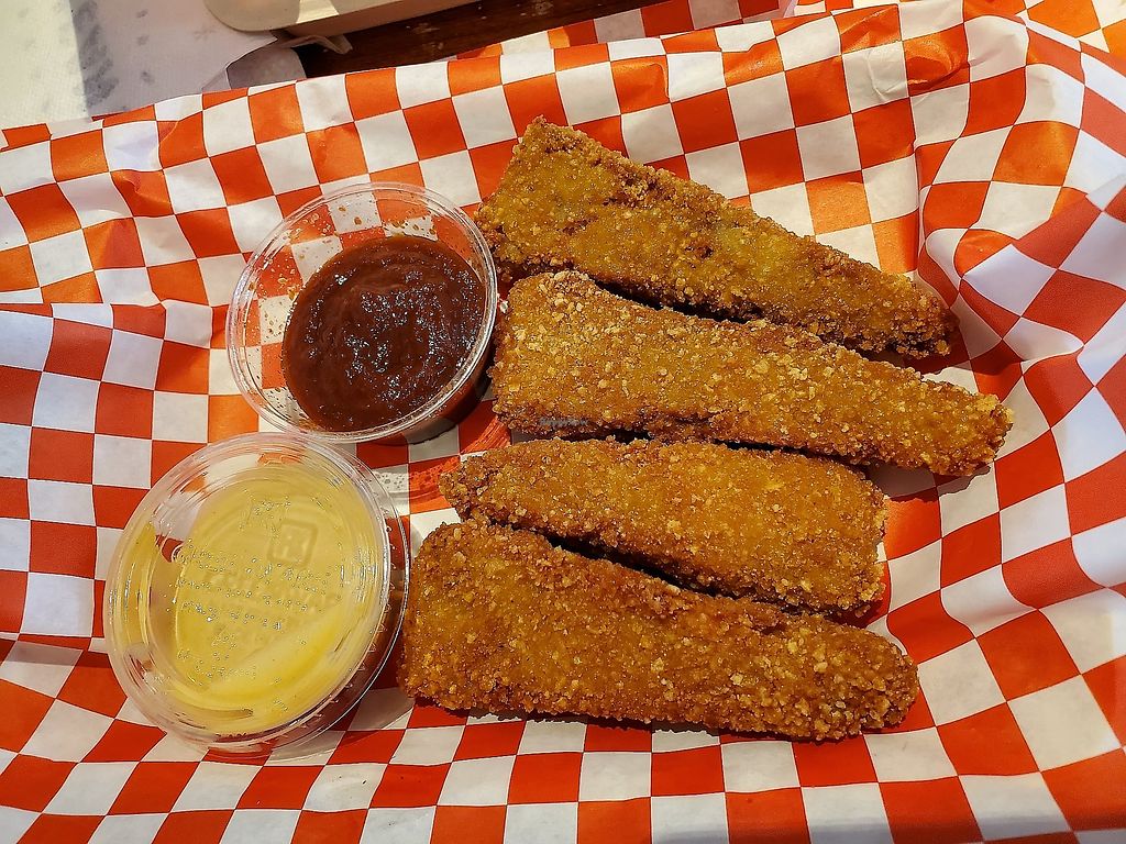 Crispy tempeh chicken with pretzel bun