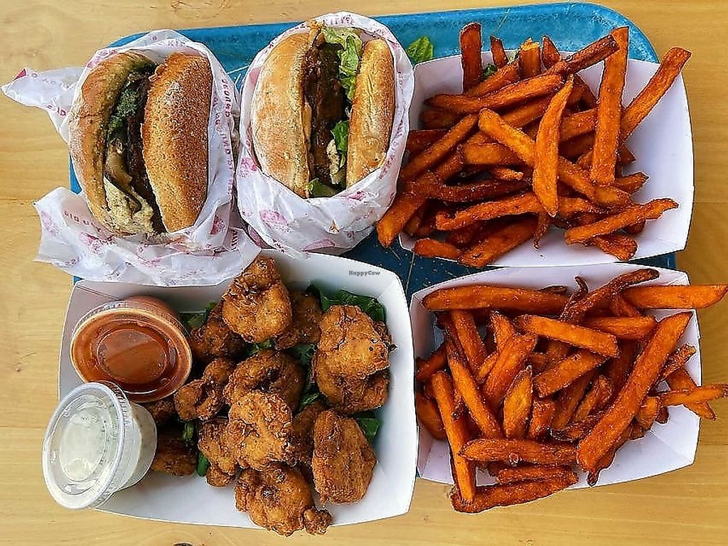 B2 burger, fries & cauli bites