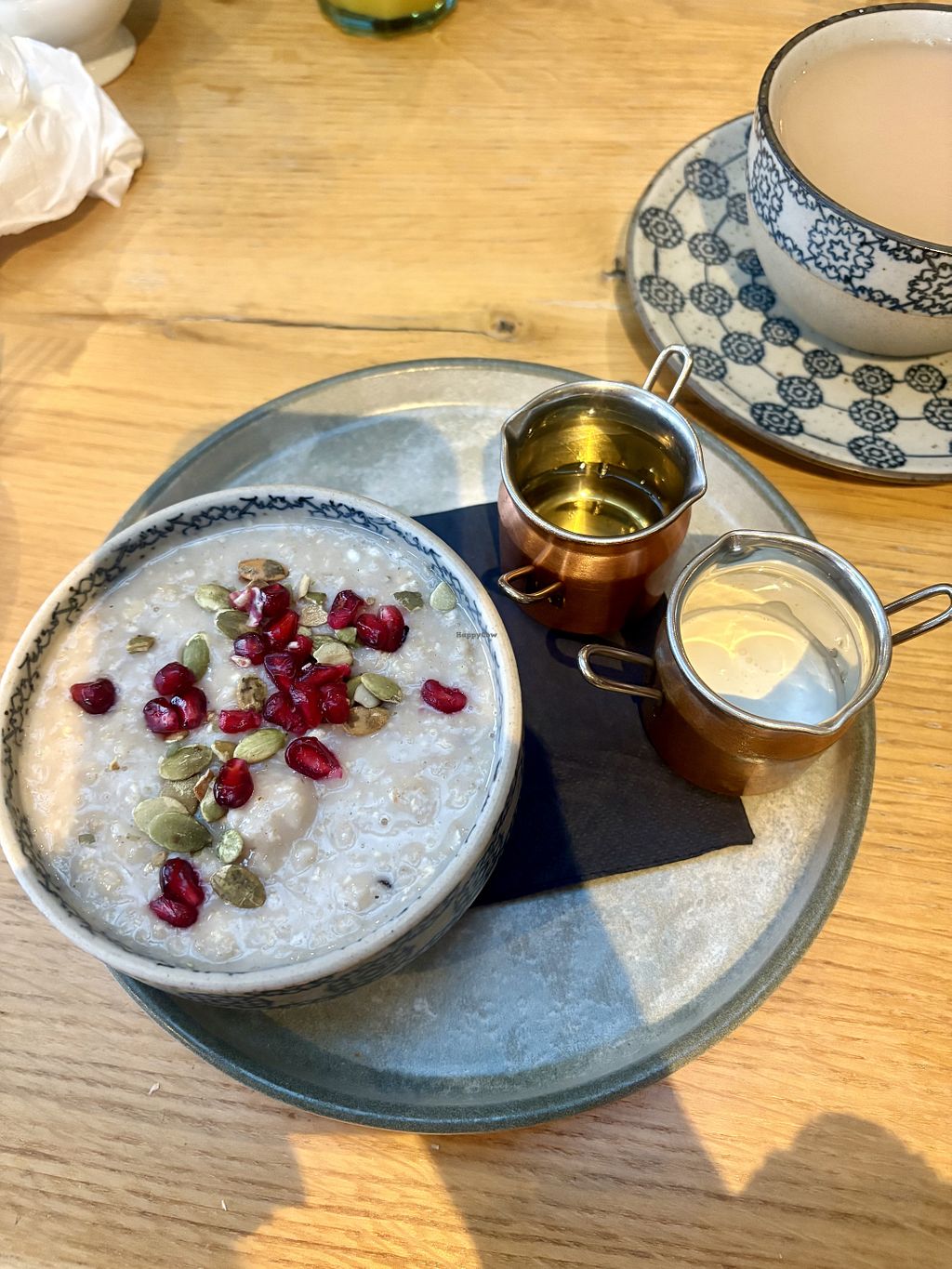 for breakfast you can take whatever you want from the buffet, which is mostly fine, but the problem is that it is always the same, same pastries as well, and they are usually very dry and obviously not fresh. the fruit selection is tragic, but what can you expect. yogurt is some coconut one instead of soy with protein. on top of all that you can choose something from a la carte.