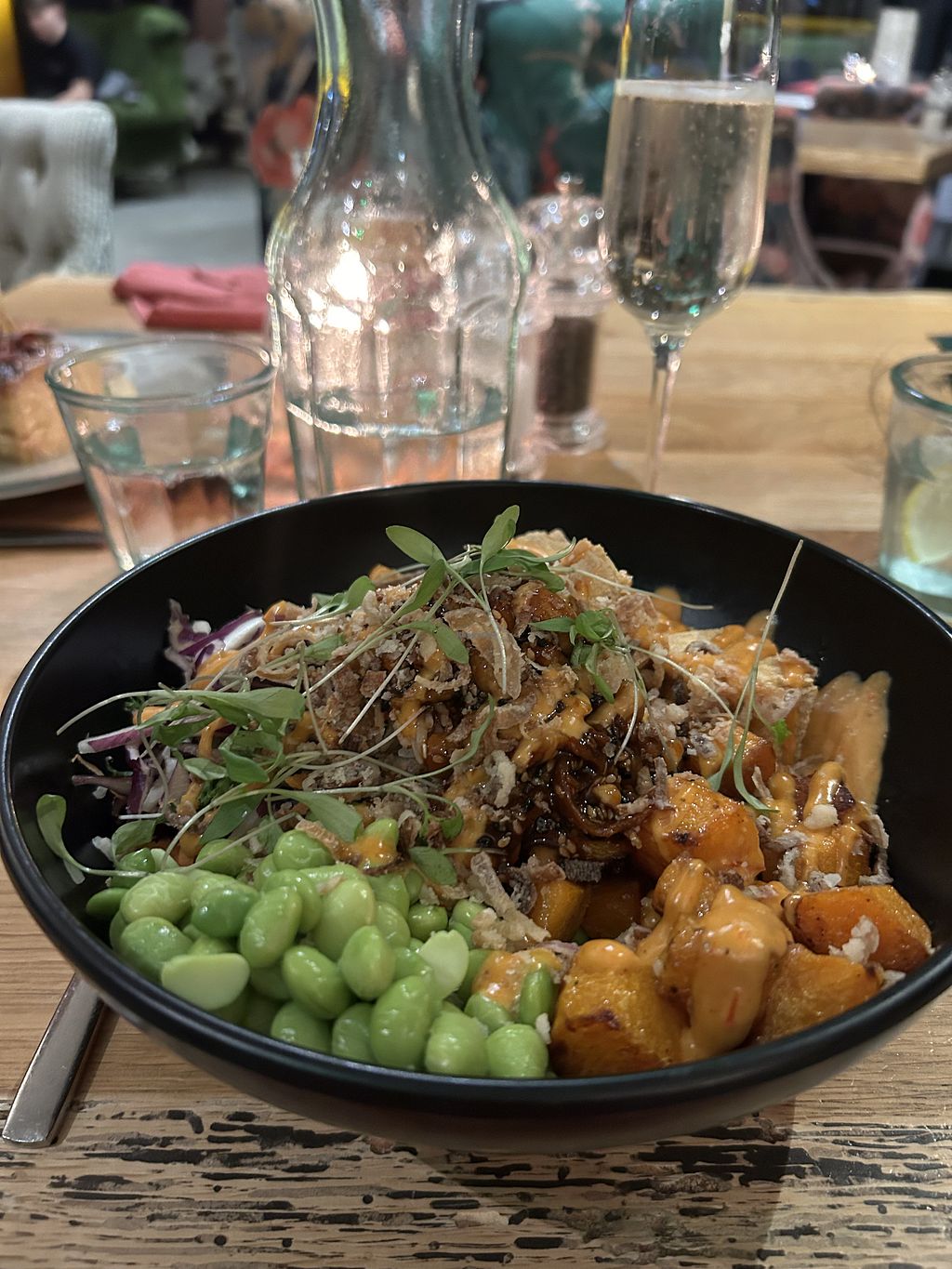 Read moreThis time was our first visit of it being fully plant based and it was even better. We went for my partner’s birthday meal and the food was delicious ~ we had the soup of the day, Korean rice bowl and juicy marbles steak and a sticky toffee pudding plus cocktails. It was all delicious and tasty, you get plenty for the reasonably priced menu too. The staff were super friendly and helpful even arranging parking for us as it was such heavy rain and the barriers were up as the car park is only for overnight guests. Will definitely go back as soon as we can😄