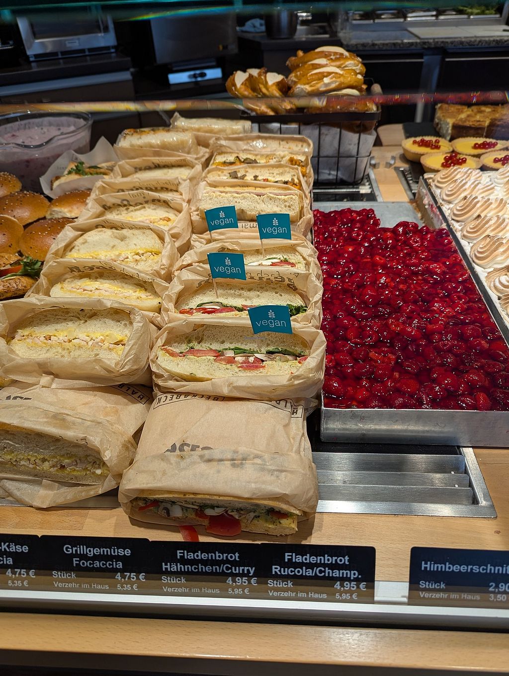 Read moreLeider gibt es in der Filiale keine Kennzeichnung für vegane Produkte. Man kann aber auf der Webseite die veganen Produkte filtern. Brezeln sind leider nicht vegan.