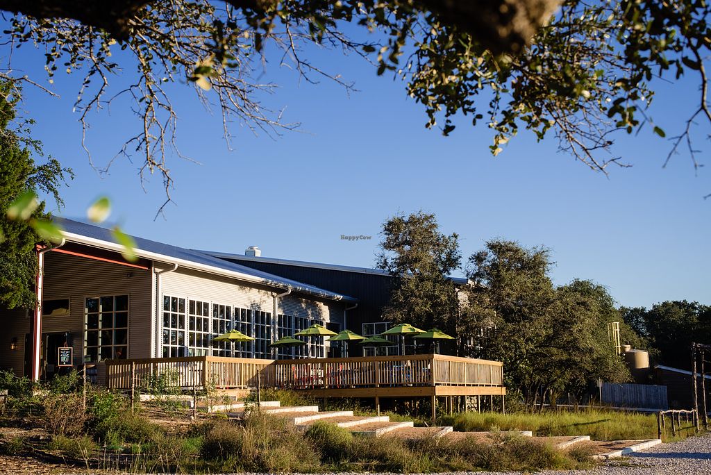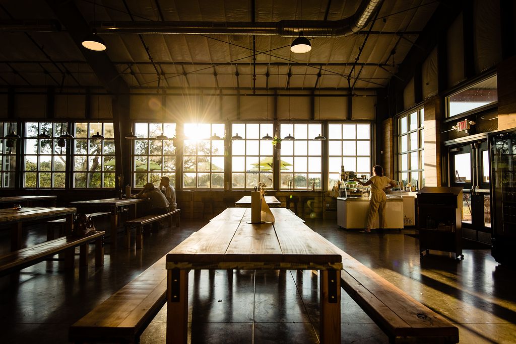 Large spaced out taproom with amazing hill country views