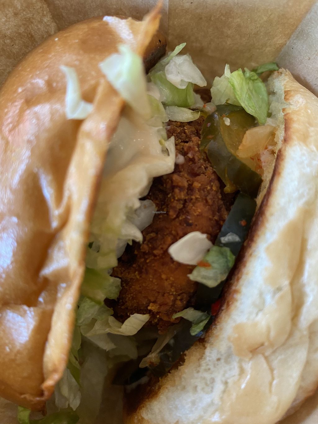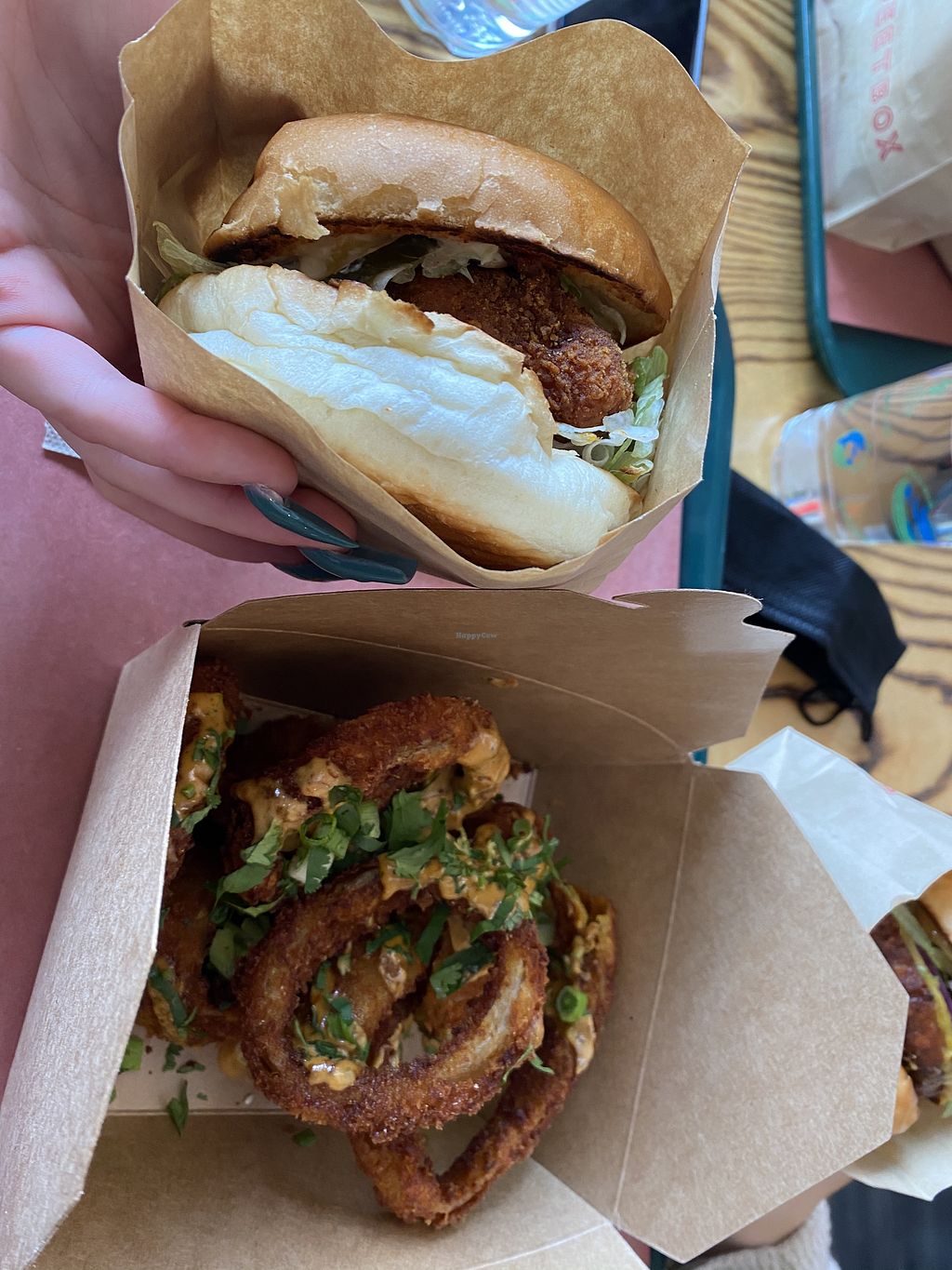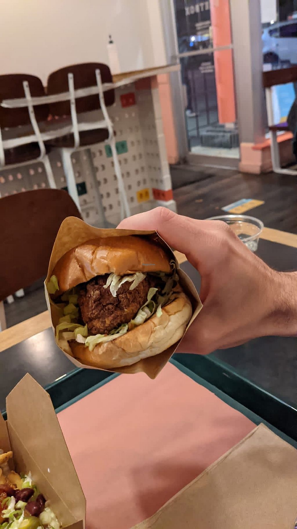 Read moreWe got the nashville chicken sandwich, the onion rings and the fries. The sandwich was tasty - the seitan had a great firm consistency and the miso aioli was awesome. The onion rings were thick and crunchy and a little spicy. The fries were good too, but probably our least favourite of everything we ordered.