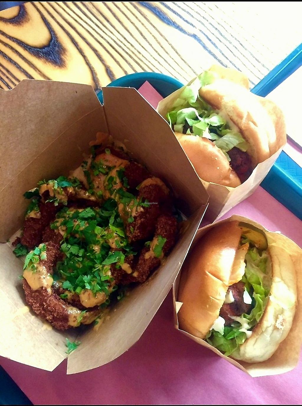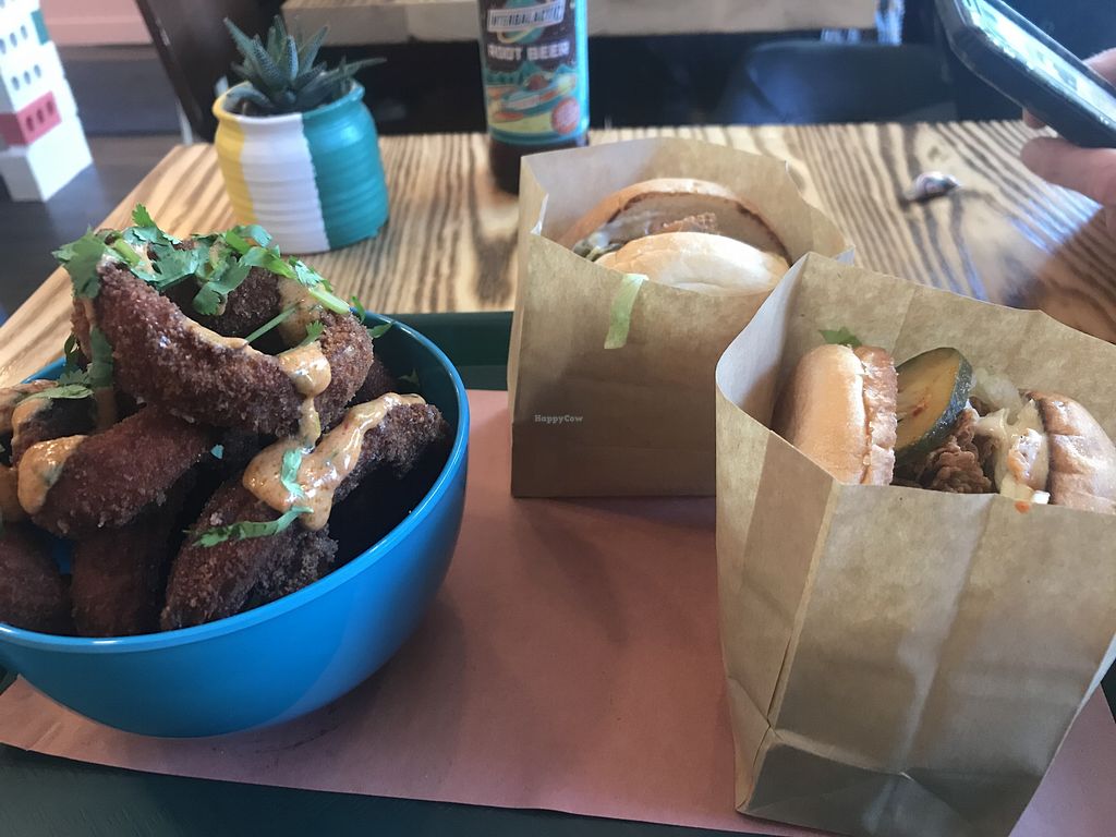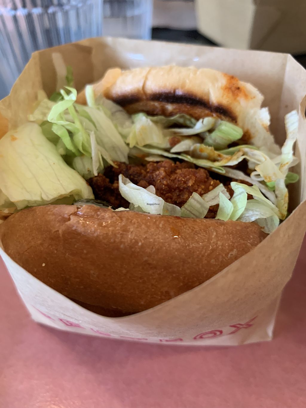 Read moreWe got the nashville chicken sandwich, the onion rings and the fries. The sandwich was tasty - the seitan had a great firm consistency and the miso aioli was awesome. The onion rings were thick and crunchy and a little spicy. The fries were good too, but probably our least favourite of everything we ordered.