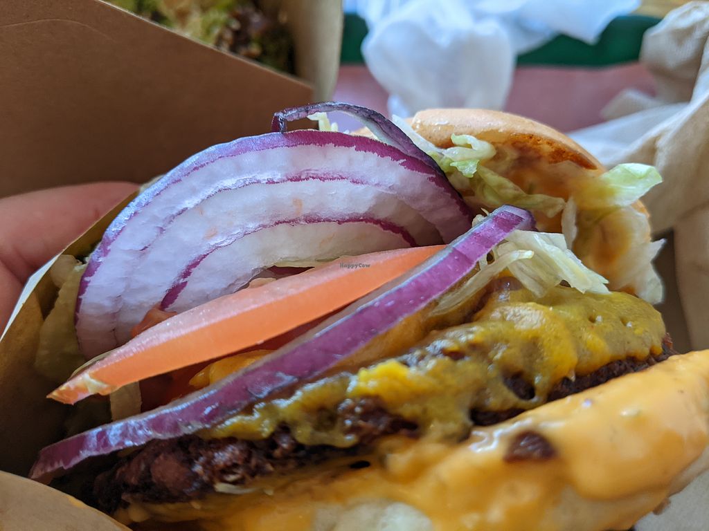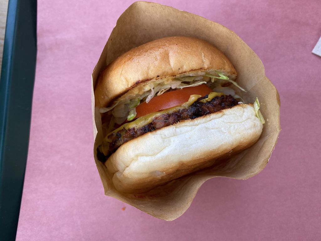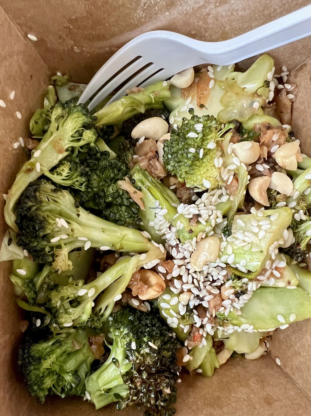 The burger patties are based on locally made TMRW Foods plant-based meat, with added beans and other ingredients. I had the very good cheezeburger, which comes topped with all the fixings. I took away for later a side (large serving though) of roast broccoli and mushroom XO sauce. Hot sides include corn-on-the-cob and yam wedges; cold sides include three salads. Other menu items attracted me, so I will visit again soon (jerk tempeh, grilled eggplant...).