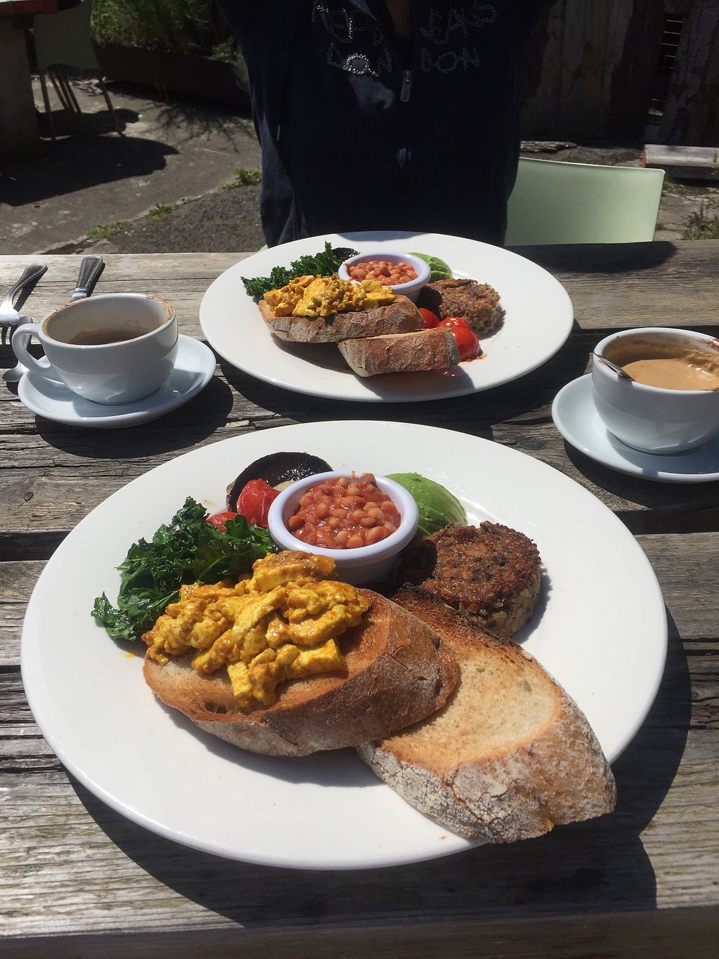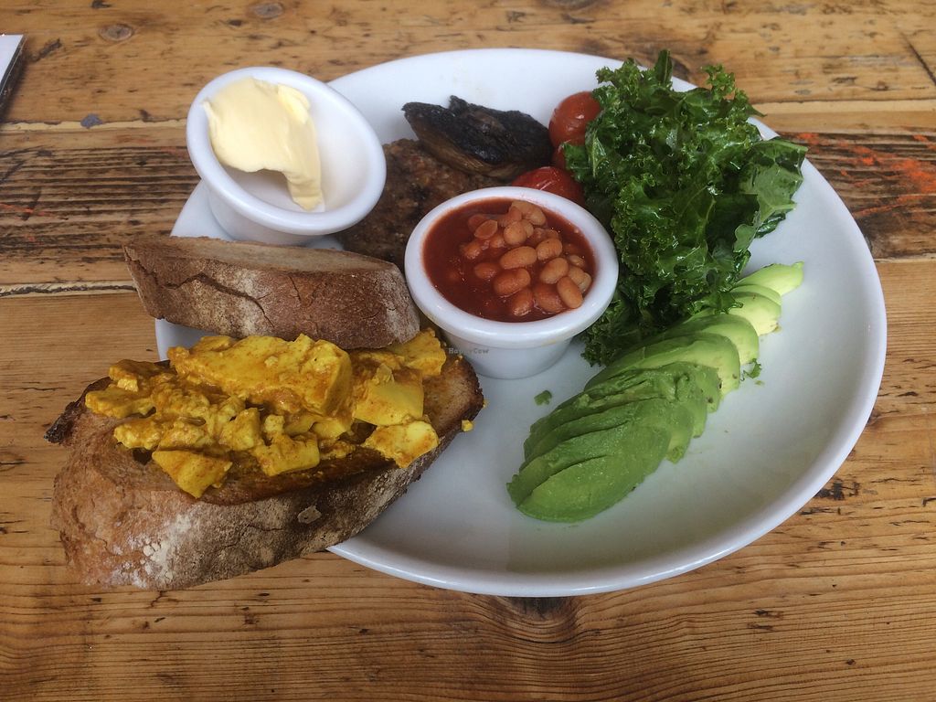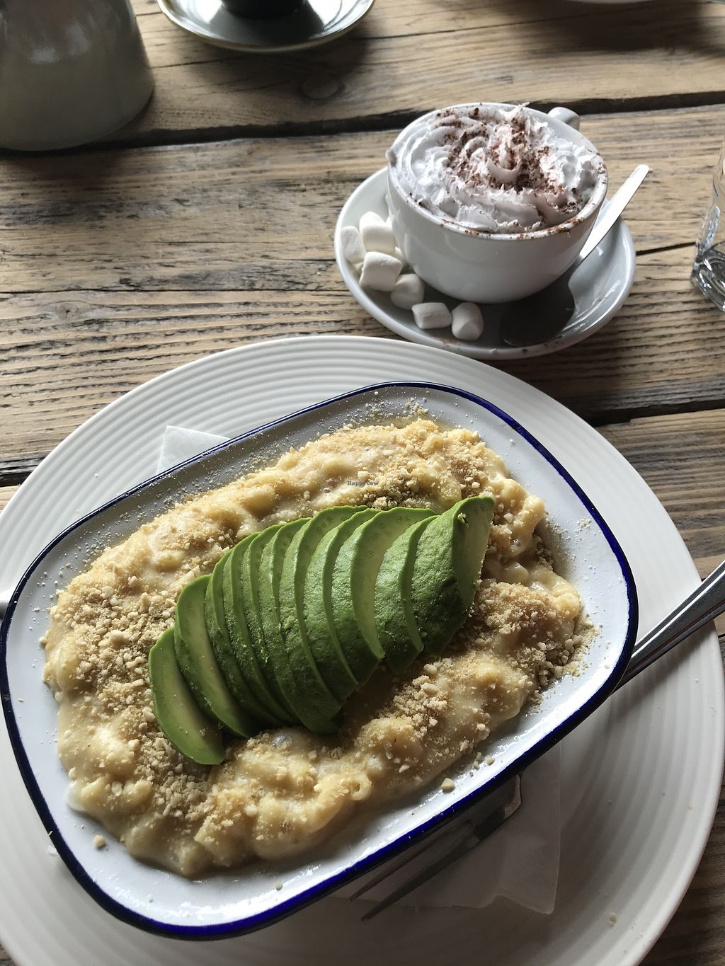 It felt like what the original vegan cafes wanted to be. Yoga upstairs (which I didn't try) food that is actually delicious and a gorgeous outside area. I had the haggis roll, an iced latte, the caramel bubble waffle and mac n cheese and everything was really good. I will definitely be back!