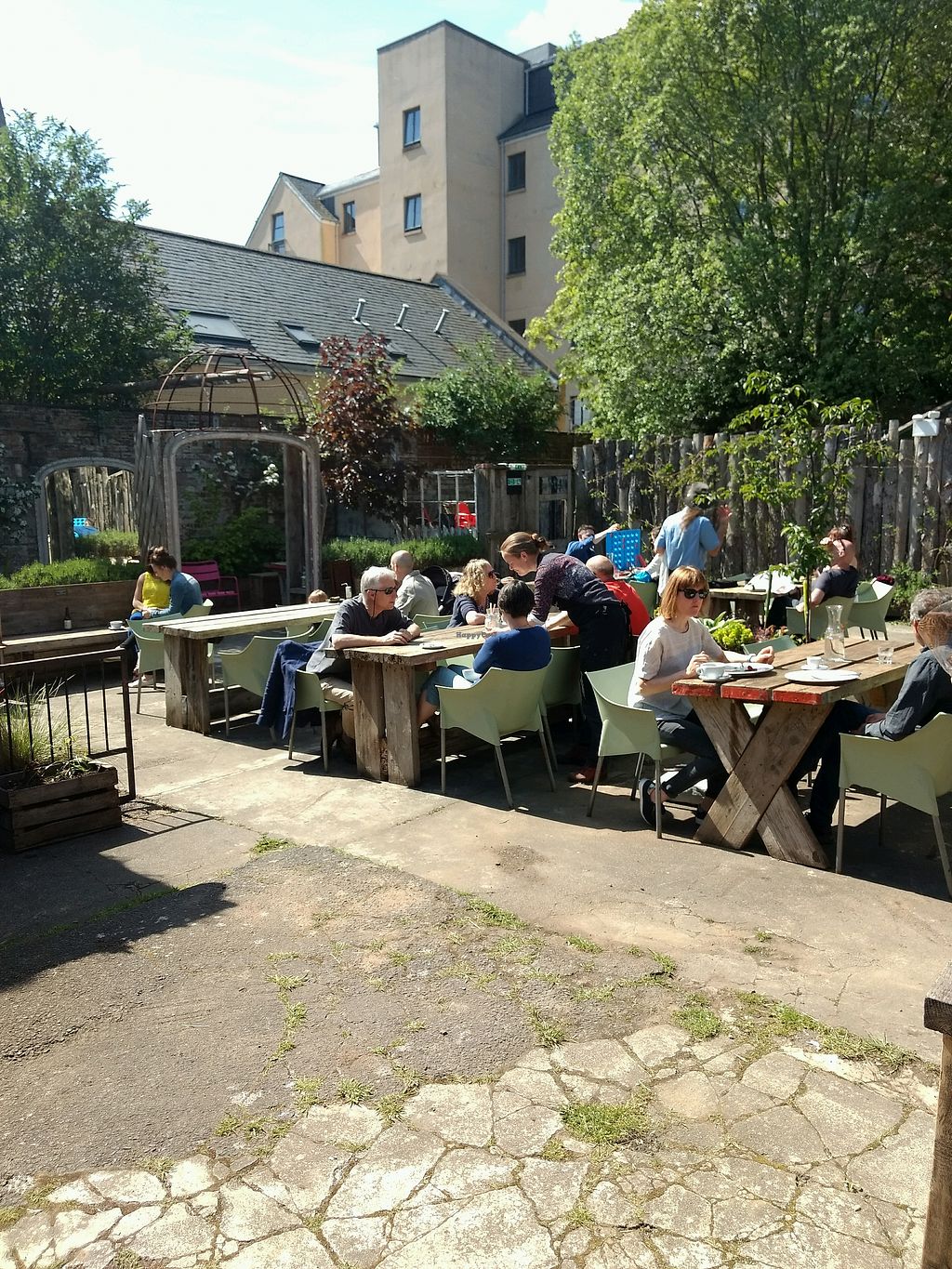 A wonderful restaurant with a great patio. I finally found a vegan restaurant here with a fresh, large entree salad! The salad is loaded with a variety of veggies and comes with a garlicky creamy dressing. I also sampled their vegan cheese made in their kitchen. My favorite place in Edinburgh.