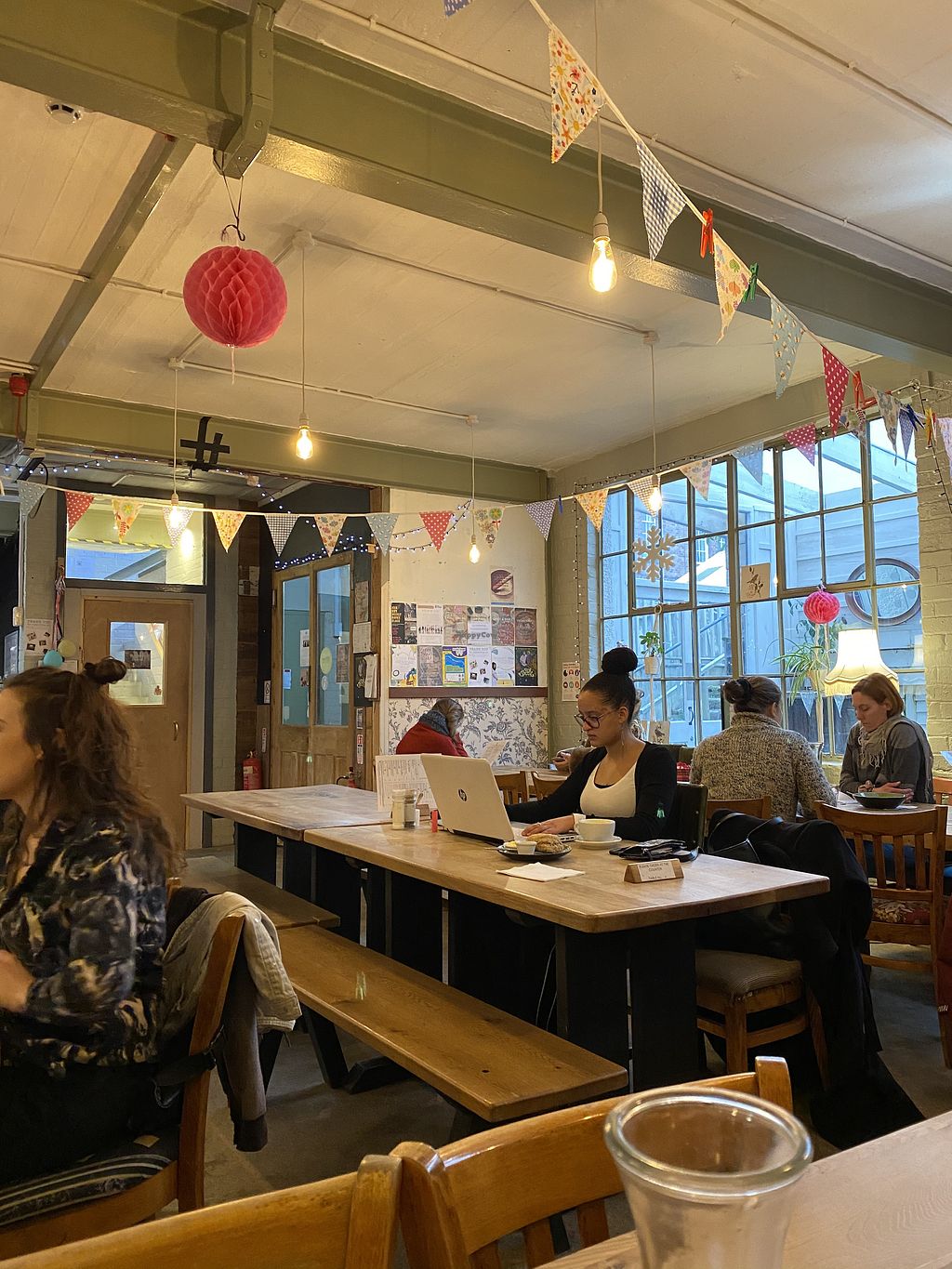 Lovely vegan cafe. Very relaxed and welcoming atmosphere with lots of tables inside and a decent sized garden too.