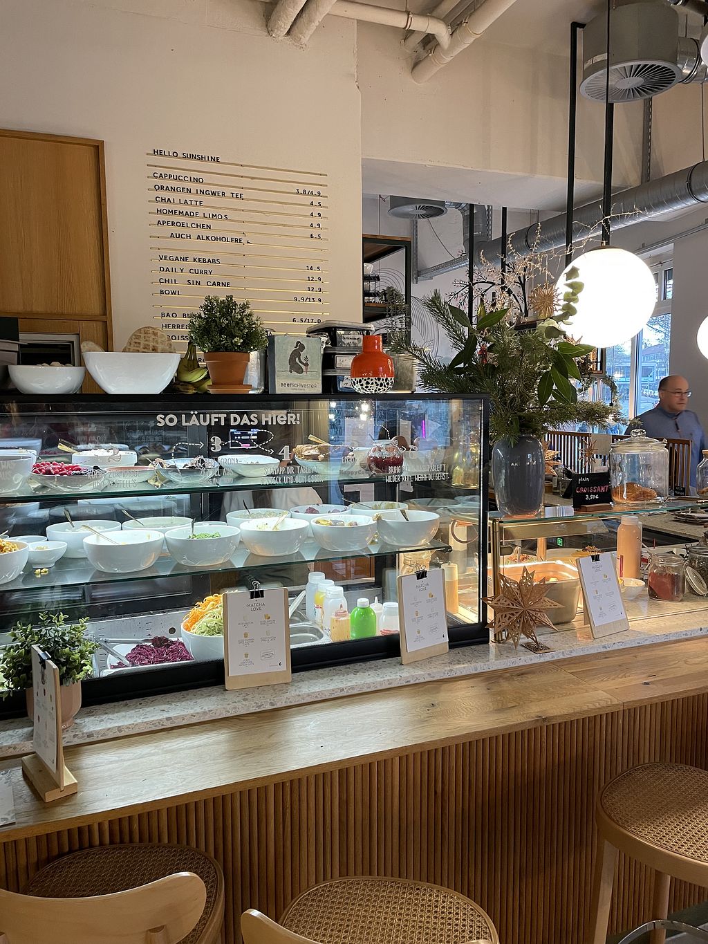Read morePros: Auswahl an veganen Optionen (fast alles vegan), Schöne Tische, gemütlich, Sehr netter und kompetenter Service