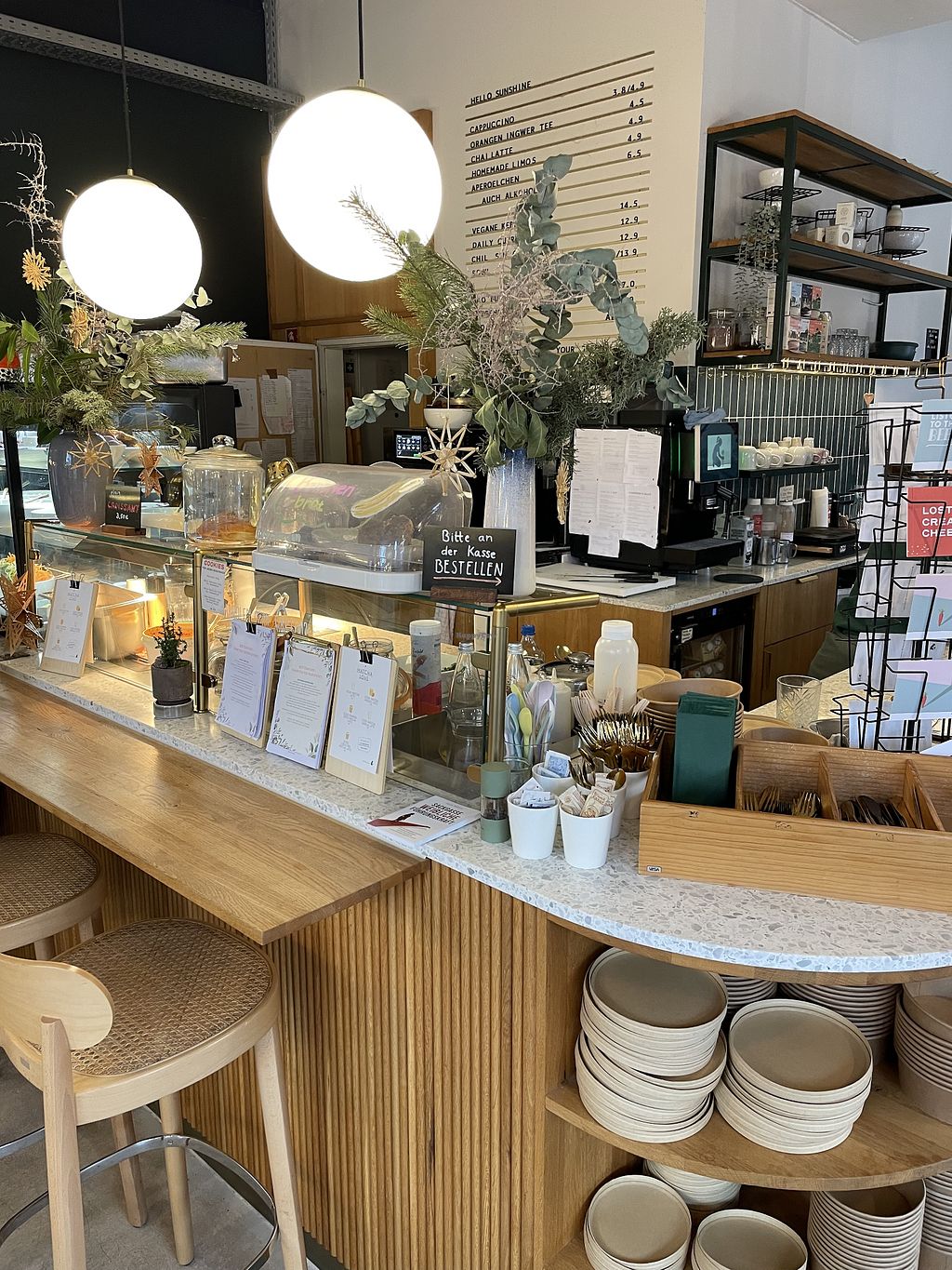Pros: Überwiegend vegan, sonst vegetarisch , Lecker, Arbeitsplätze, Wlan