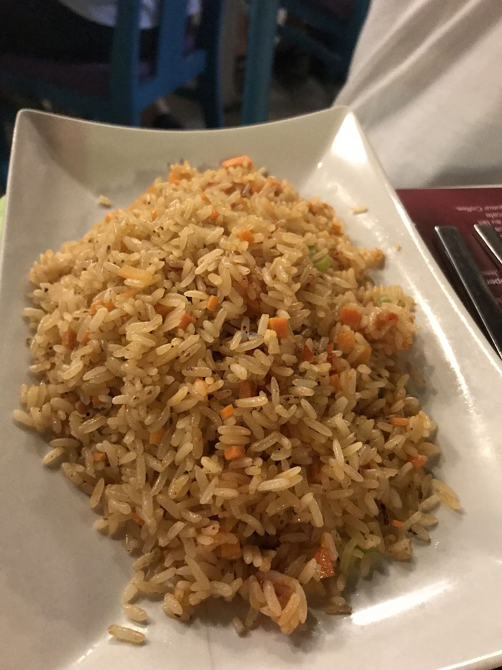 Clearly labelled vegan menu with a few vegan options including fried rice.