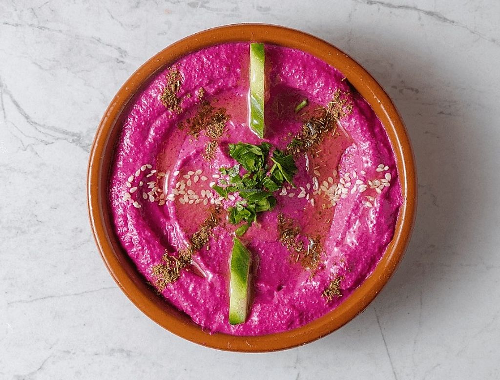 Beetroot hummus: beetroot puree, boiled chickpeas puree, tahini, fresh…