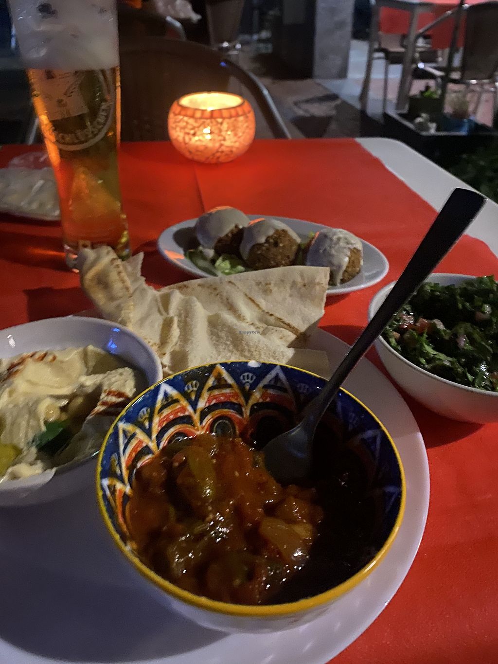 They have clearly marked vegan options on the menu and are open late in Paradiso. Otherwise we were underwhelmed by the food, it looked beautiful but the humous was bland, the mouhammara a little off, stuffed grape leaves just ok. The falafel balls were good.