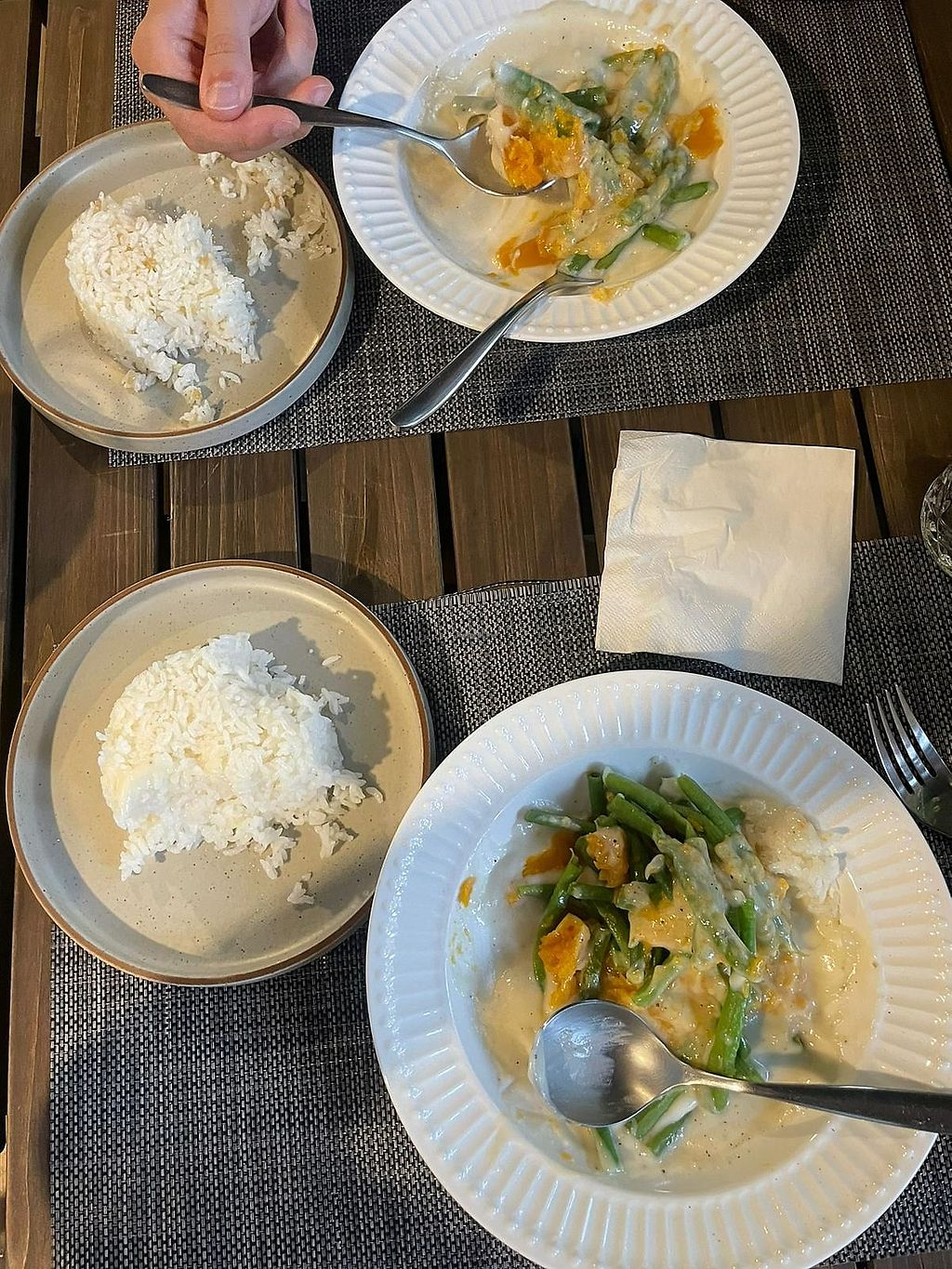 We tasted the string beans and pumpkin with coconut sauce, garlic and coconut and rice.