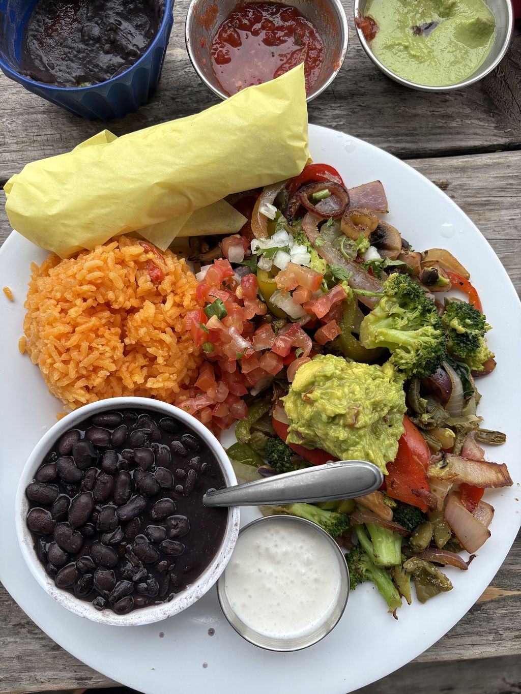 Complimentary chips, beans, hot salsas