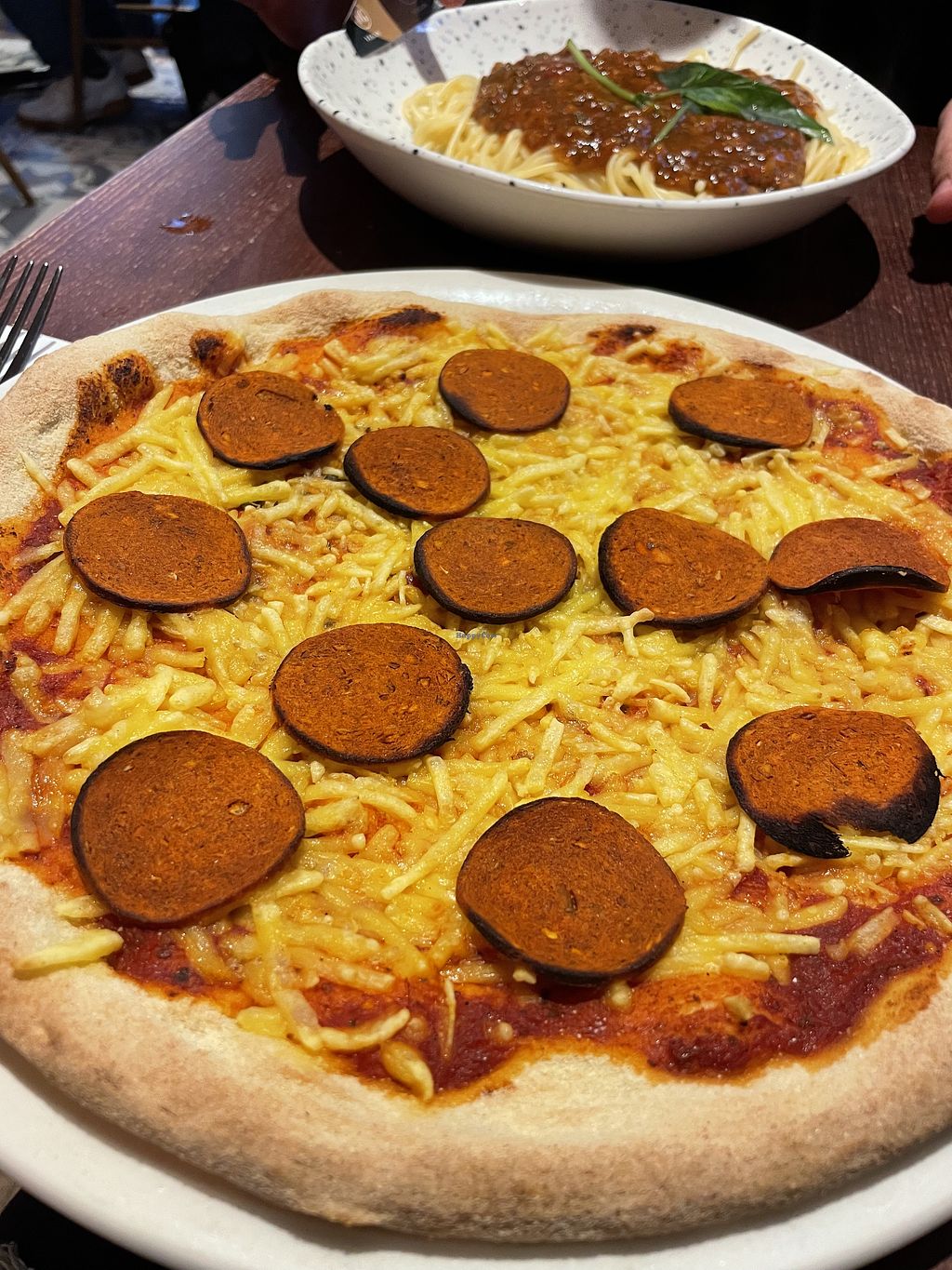 I had the vegan pepperoni pizza and it was great. The cheese was a bit sticky but overall I enjoyed. Service was a bit slow