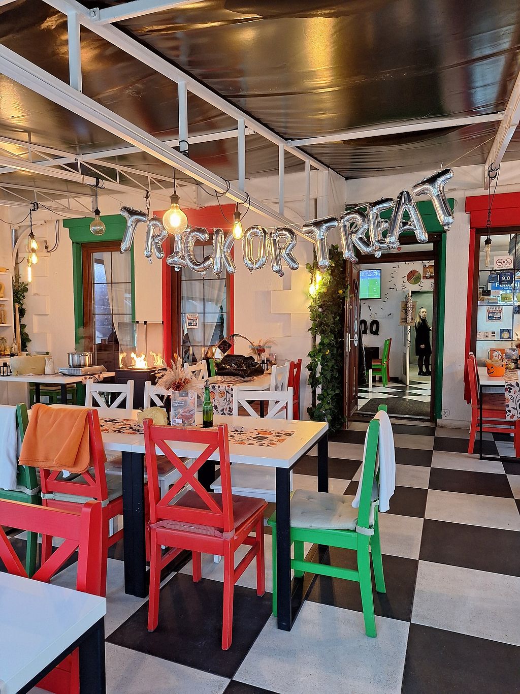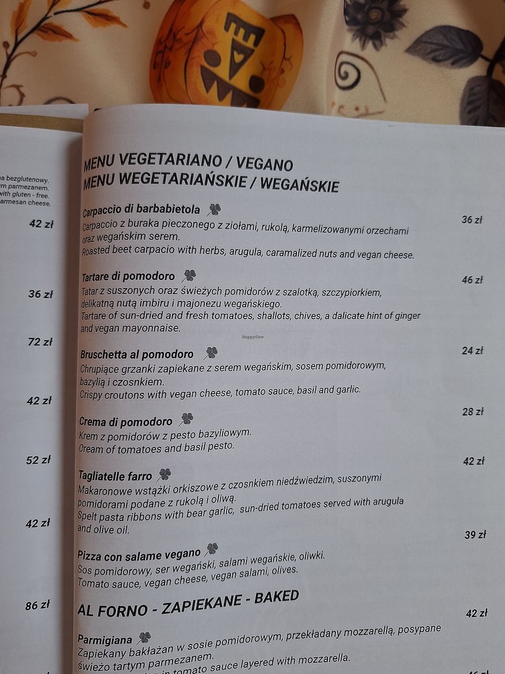Zamówiliśmy pizzę i tatar z pomidora. O ile pizza w miarę ok, dało się ją zjeść i tyle, nawalili tonę rukoli, to tatar składał się z pokrojonego w kostkę pomidora słabej jakości wymieszanego z suszonym pomidorem. Nie dostaliśmy majonezu wegańskiego, który był w opisie dania, zero przypraw. Herbata za chore pieniądze, 16 złotych nie nadawała się do wypicia, nasypali do niej surowy cynamon, była gorzka i obrzydliwa. Po zwróceniu uwagi kelnerowi dostaliśmy 2 złote upustu za brak majonezu.