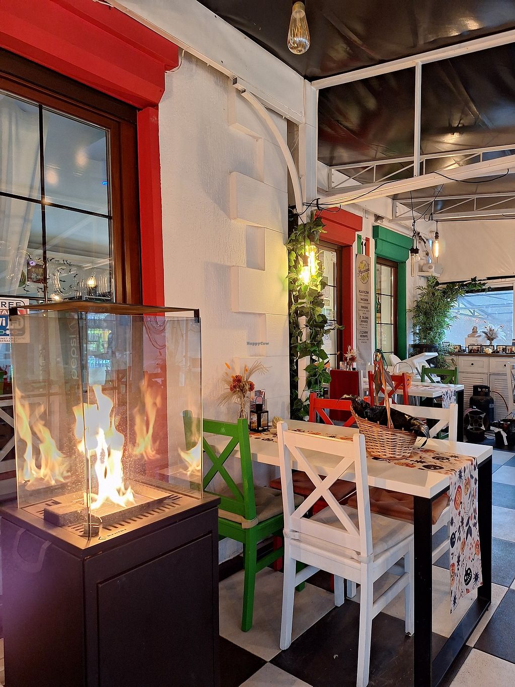 Good range of vegan dishes in a town with very limited options. Outdoor seating under a roof. Can be full on sundays. Food is decent quality.