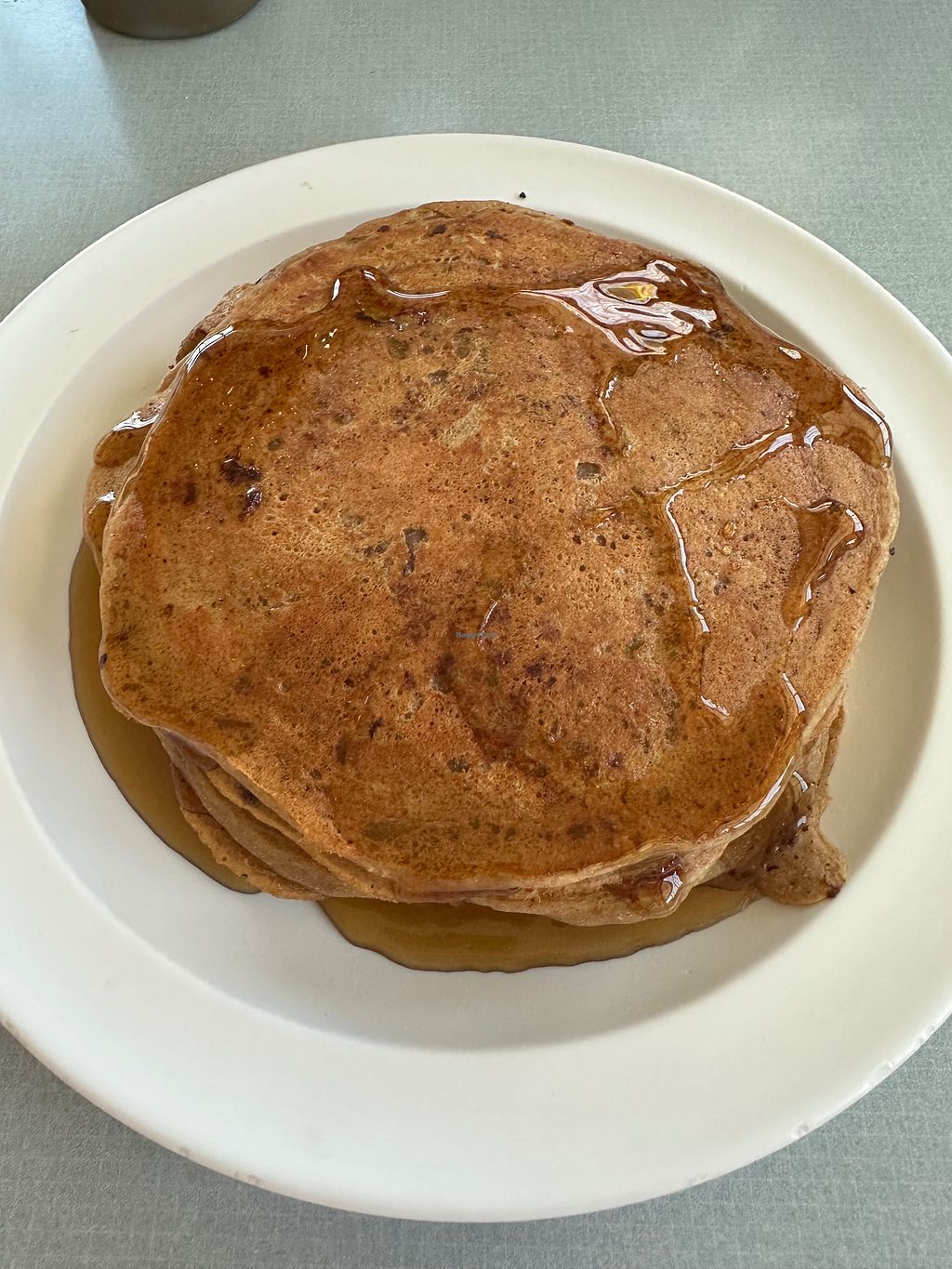 I had the vegan chunky monkey pancakes and they were delicious! Extremely fluffy, filled with bananas, choc chips and walnuts. I added some maple syrup on top. Only downside was they couldn’t do vegan whipped cream which comes on the non vegan option. Would have made it look a little more impressive if there was a topping. However I’d still recommend!