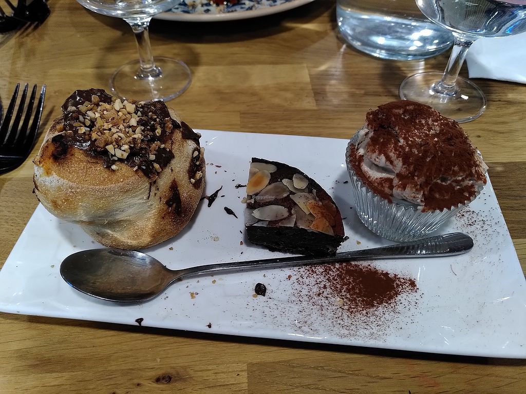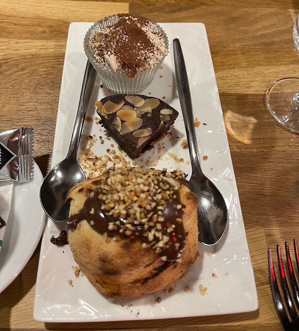 Vegan café gourmand : cream cheese, chocolate cake and chocolate calzo…