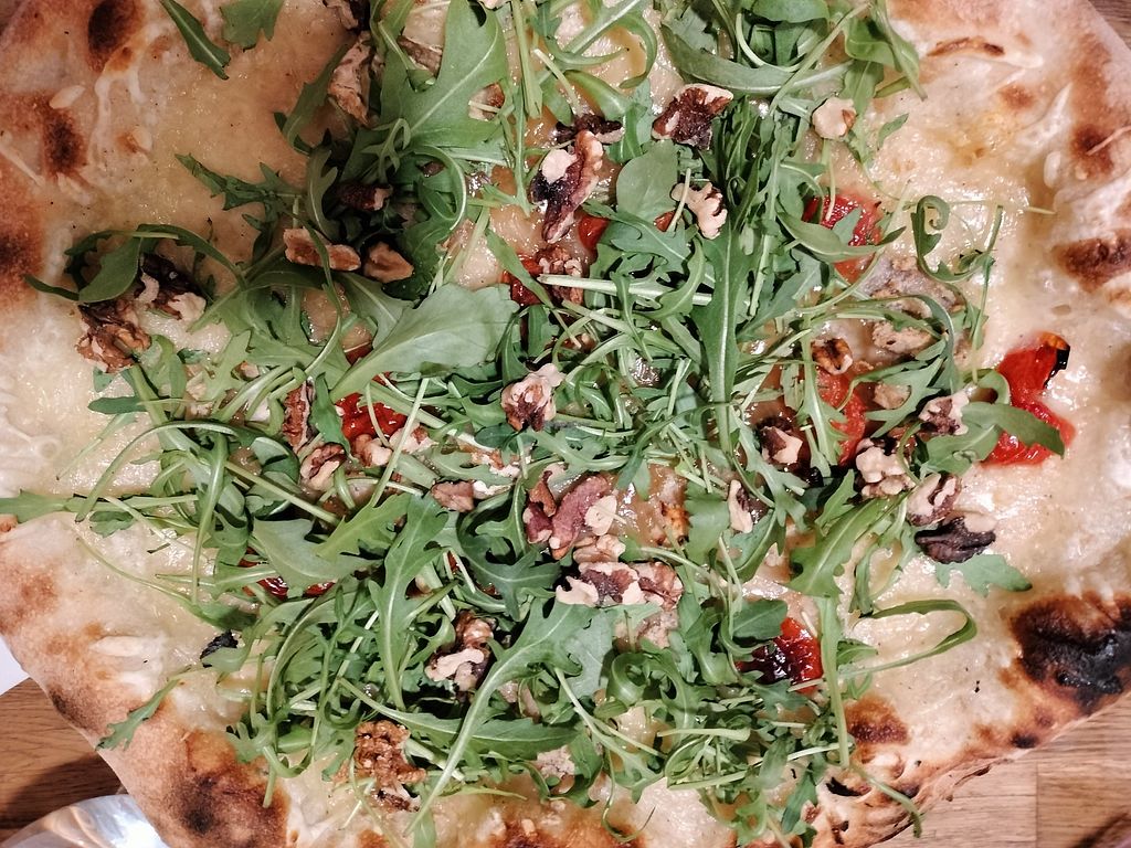 Pizza chèvre-érable (crème végétale, fromage de chèvre végétal, roquet…