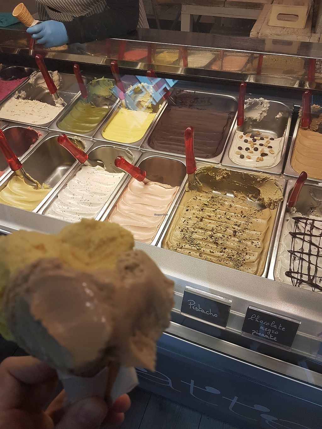 So surprised they said all the ice cream was vegan. I got hazelnut, pistachio and marzipan. I was in heaven.