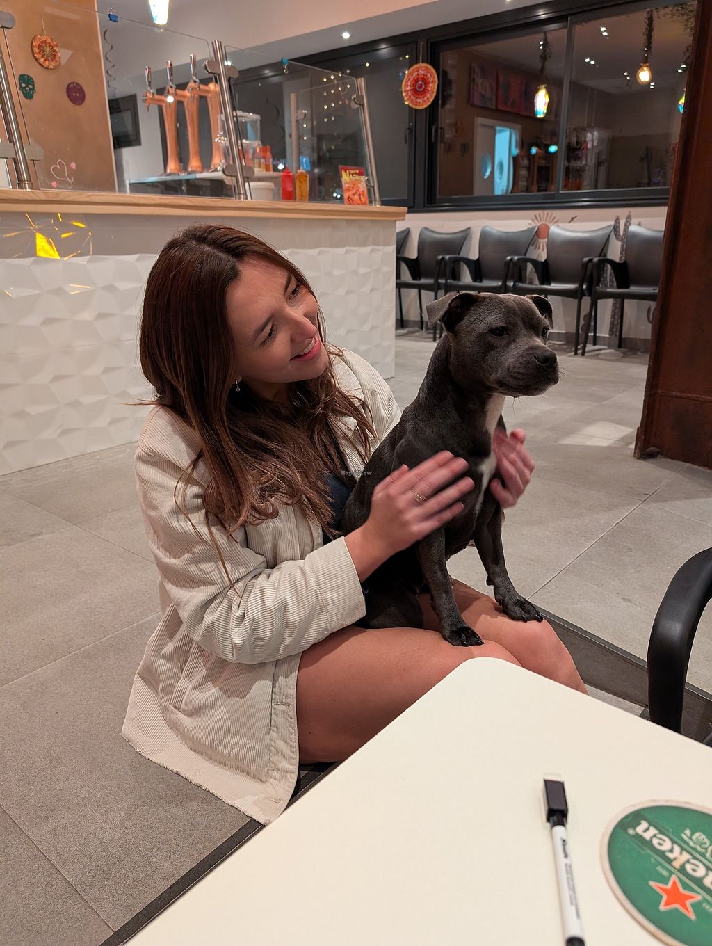 Lots of vegan options and the friendliest little Staffy puppy