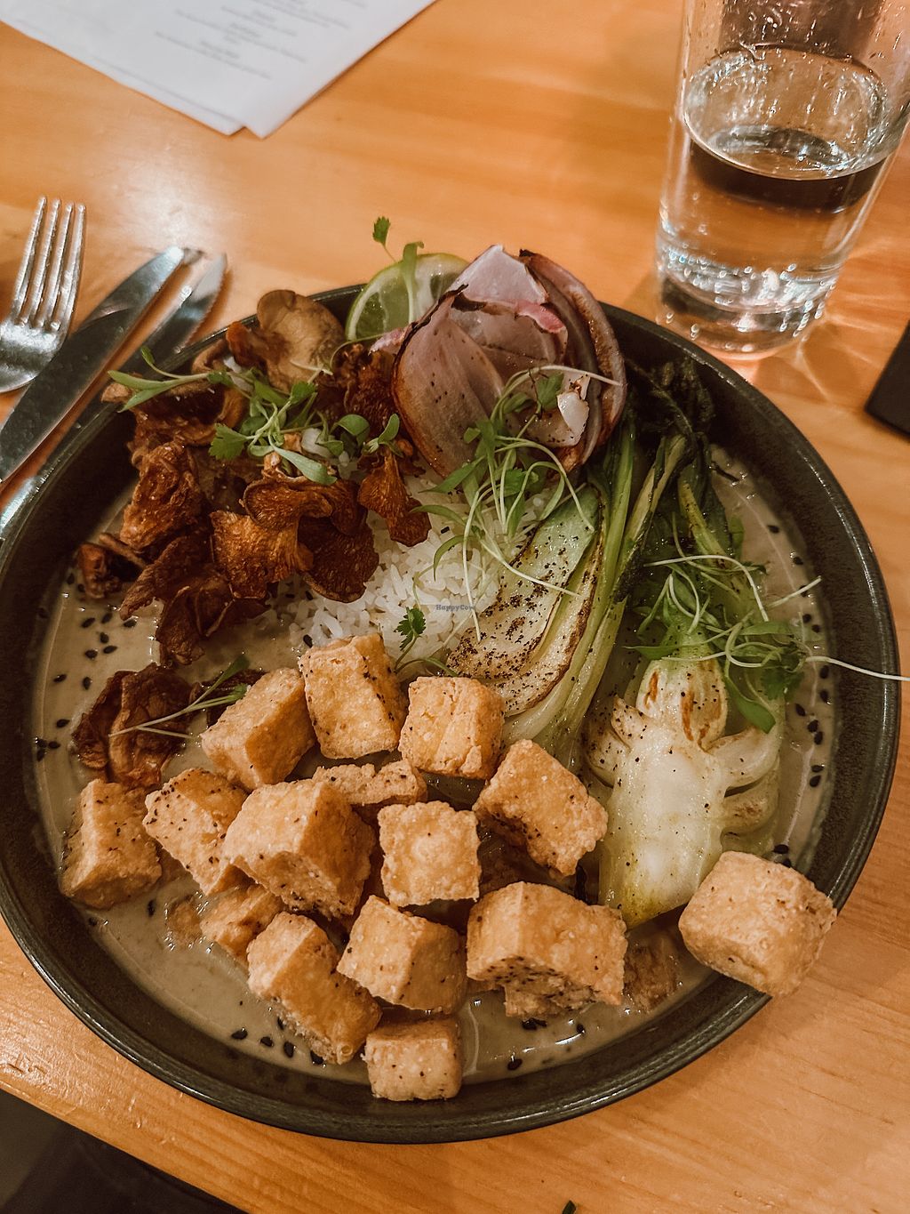 Hubby and I visited tonight for a date and were so pleased. We got the Korean fried broccoli (so stinking delicious) as an appetizer. Hubby got the vegan chick'n served with carrot slaw and turnip cake (so flavorful!). I got the mushroom risotto which also had truffle and arugula (so umami). We will be back to try other things as well and there are some differences to the lunch menu so we will try that menu out as well soon! The waitress was very accommodating to us being vegan. No complaints.